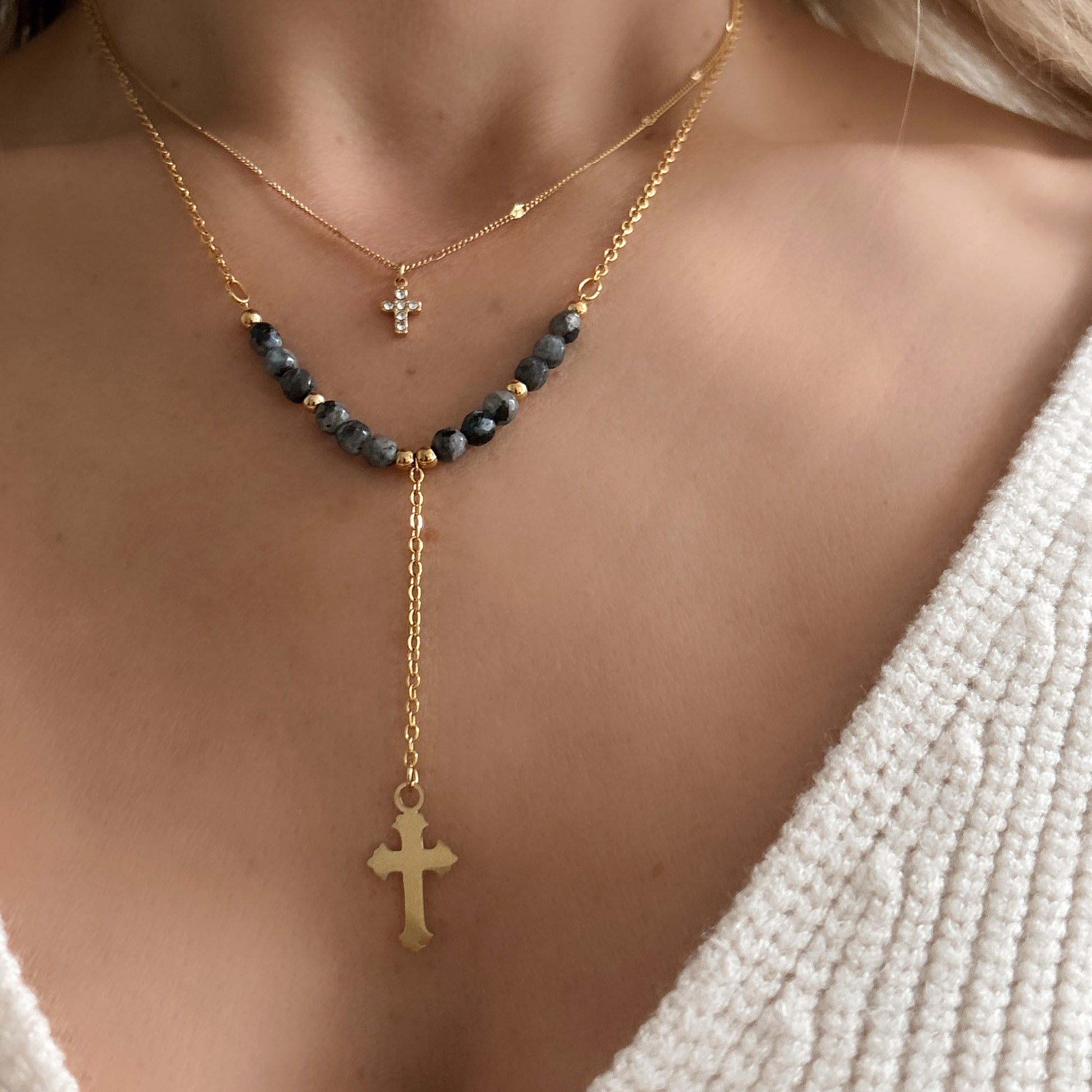 1. Chaîne en acier inoxydable avec petite croix (19" réglable pour plus court)