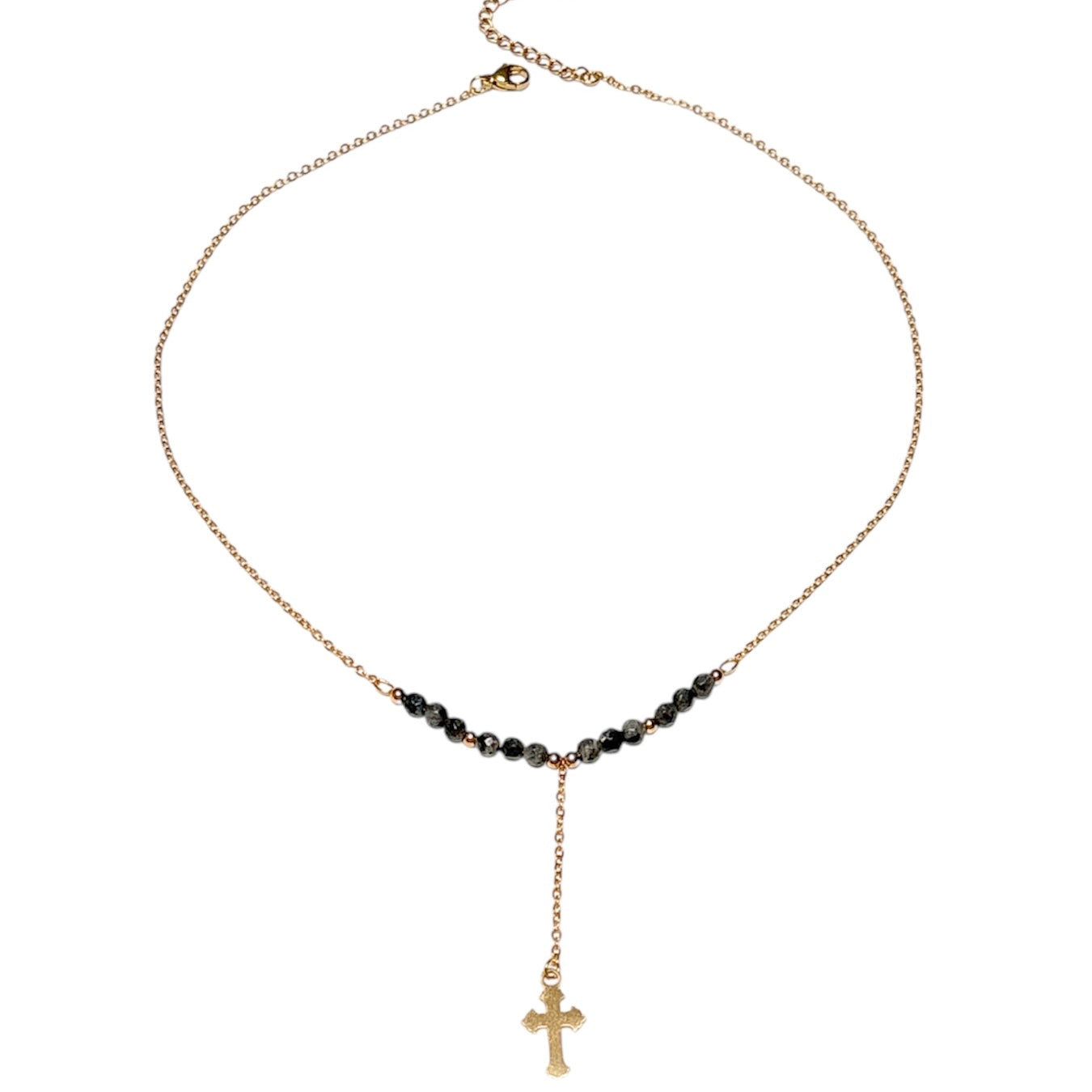 2. Chaîne en acier inoxydable avec perles et pendentif en forme de croix (17" avec extension de 2" et 1,5")
