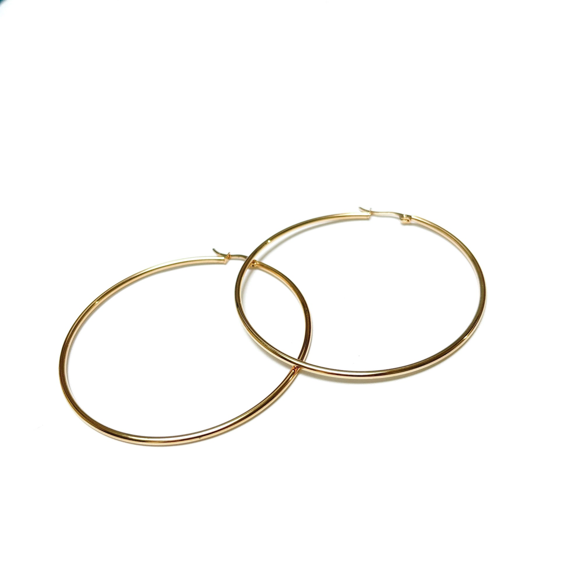 Rehaussez votre style avec nos BOUCLES D'OREILLES CRÉOLES ANGIE. Ces élégantes créoles en acier inoxydable plaqué or ajoutent une touche de glamour à n'importe quelle tenue. Avec leur design en forme de créoles larges, elles constituent la pièce de déclaration parfaite pour toutes les occasions. Rehaussez votre look et sentez-vous en confiance avec ces superbes boucles d'oreilles.