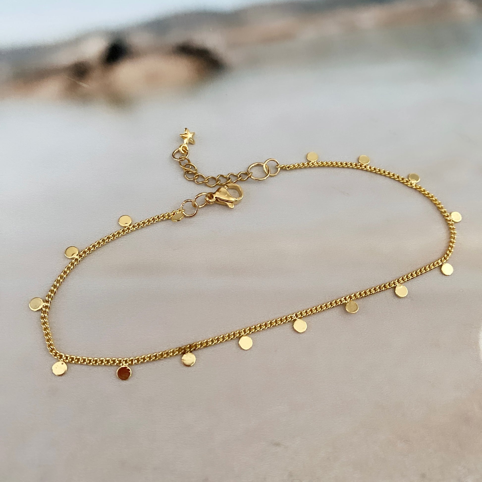 #2 Chaîne fantaisie en laiton plaqué or avec détails ronds plats