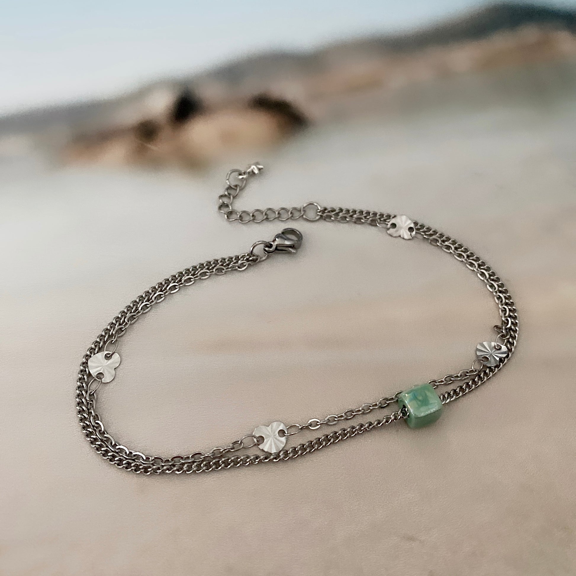 #2 Double chaîne en acier inoxydable avec cube en céramique verte