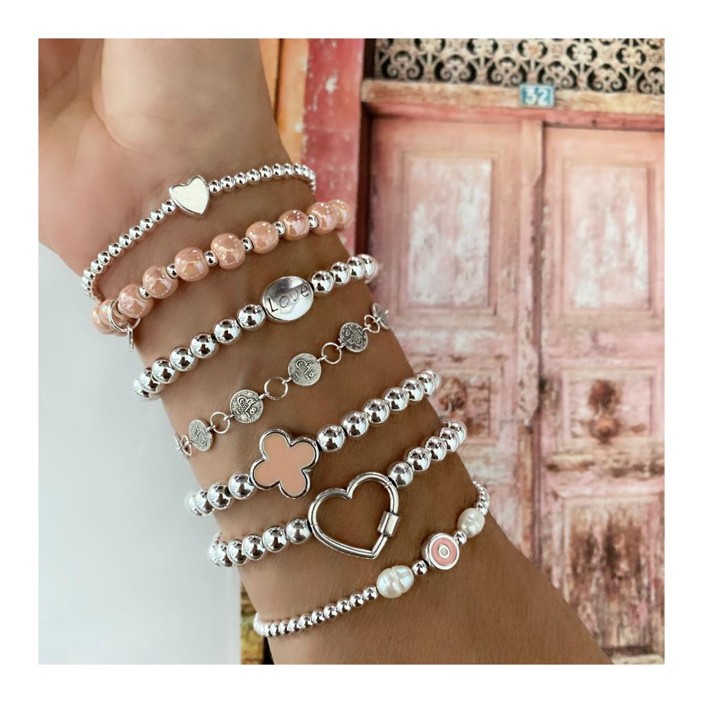 #3- Hématite plaquée argent 6 mm et perle d'amour (extensible)