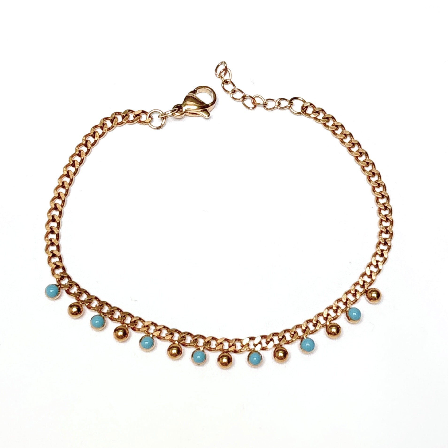 3. Chaîne en acier inoxydable plaqué or avec pendentifs en or et turquoise (6,5" avec extension de 1")