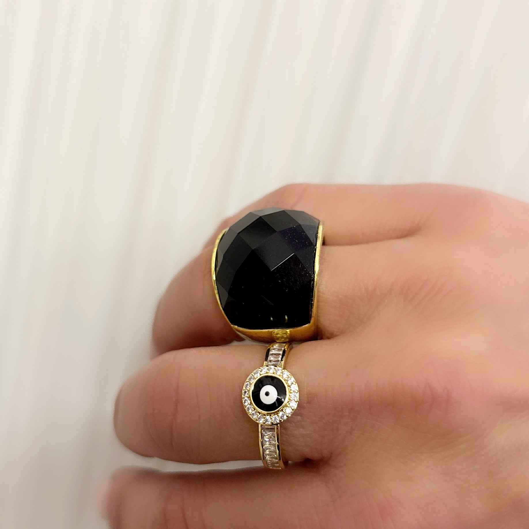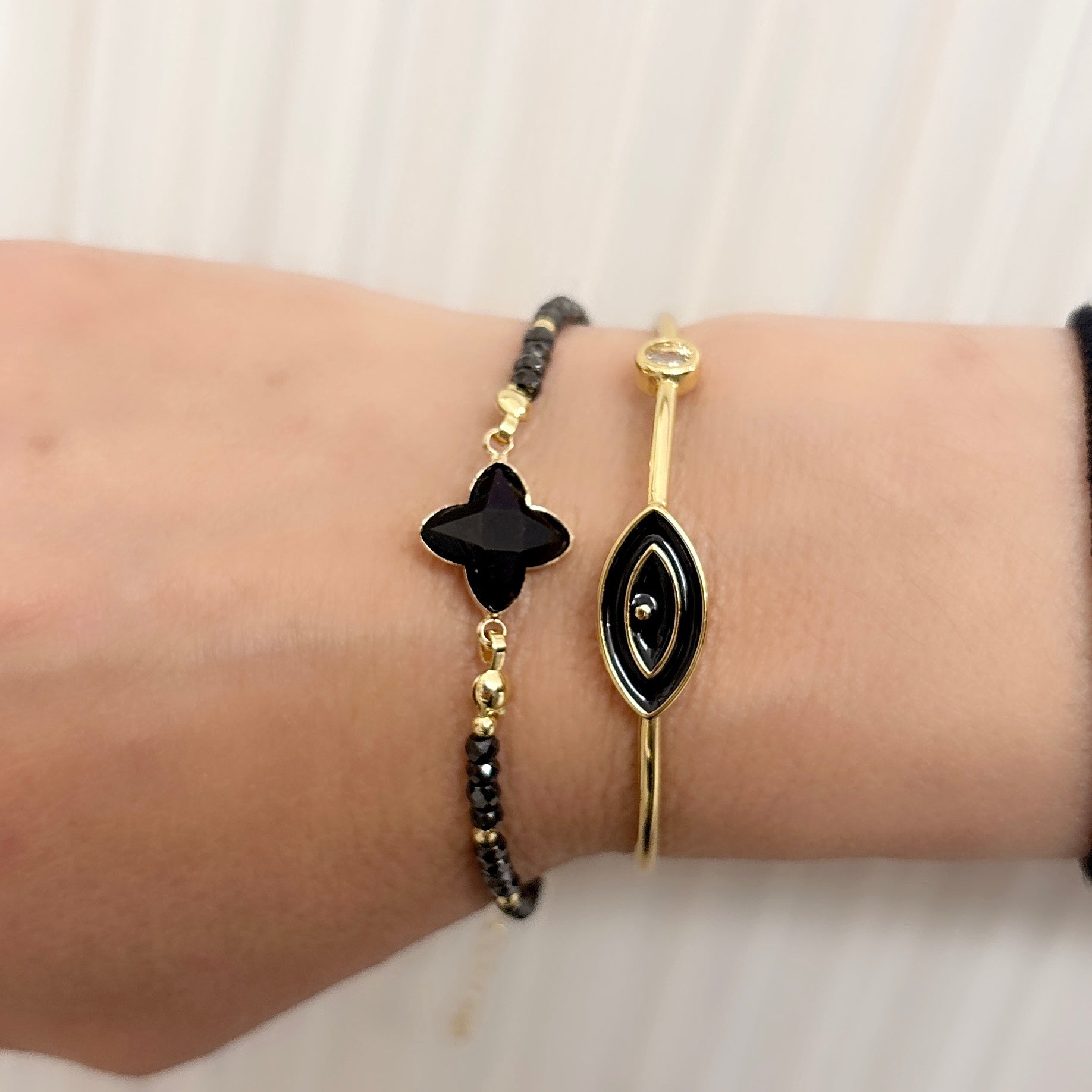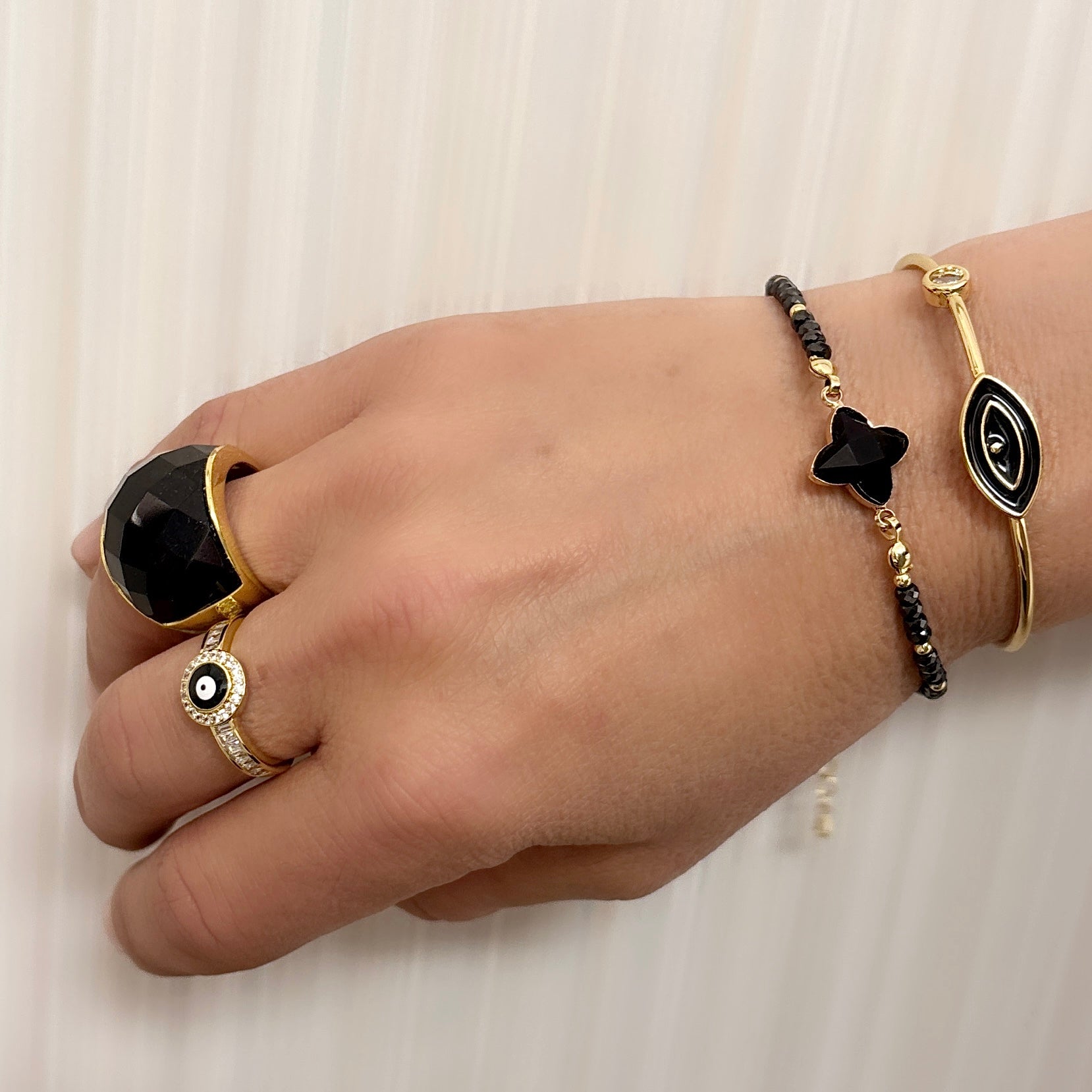 Restez tendance avec nos bracelets et bagues ARTEMIS. L'émail noir et les zircones cubiques créent une alliance parfaite. Complétez votre look avec nos superbes bagues ornées de pierres précieuses noires et de détails « mauvais œil ». Vous ferez des envieux parmi vos amies !