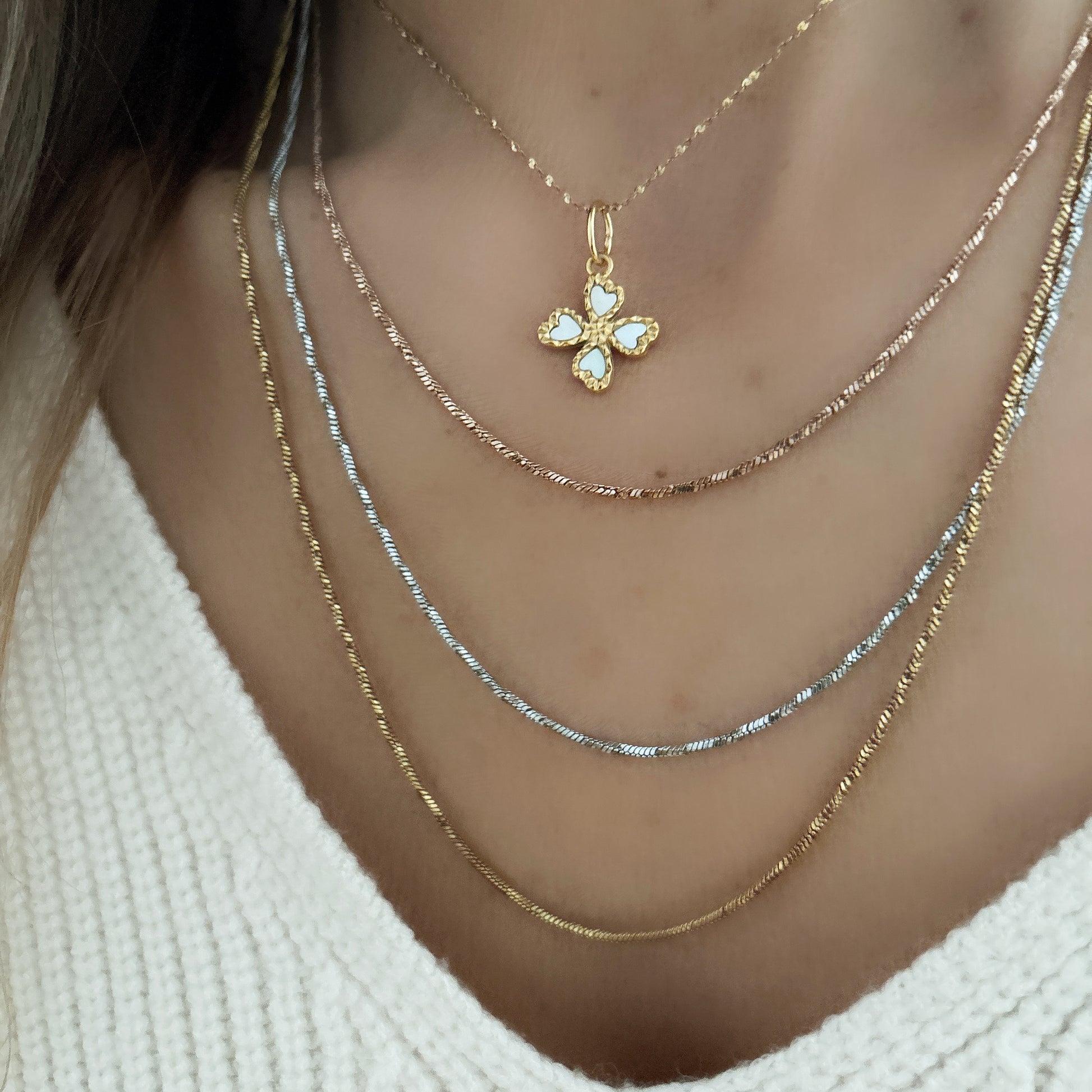 1. Chaîne en acier inoxydable avec pendentif trèfle (17" réglable au plus court)