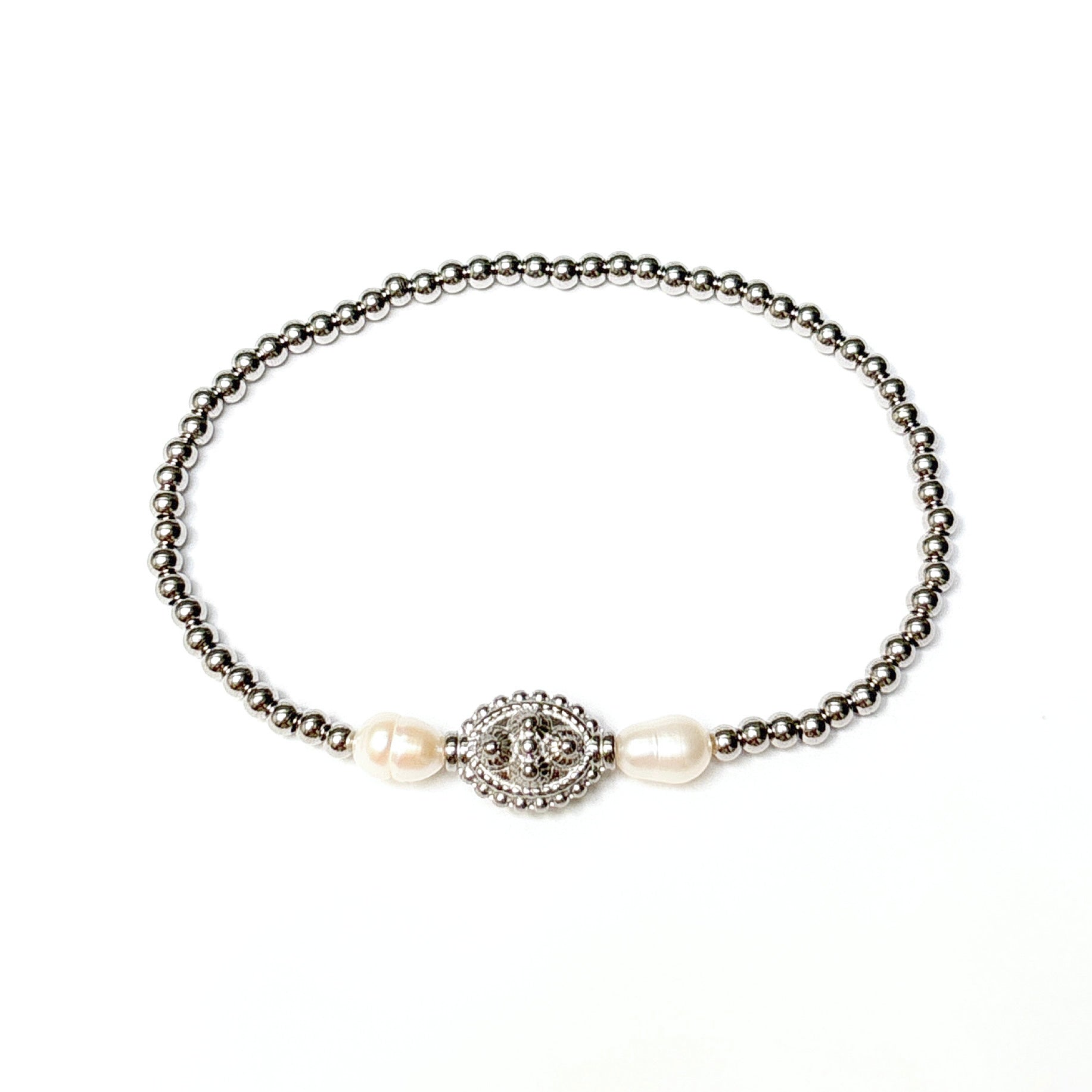 1. Bracelet extensible en perles avec perle d'eau douce et grosse perle (7" extensible)