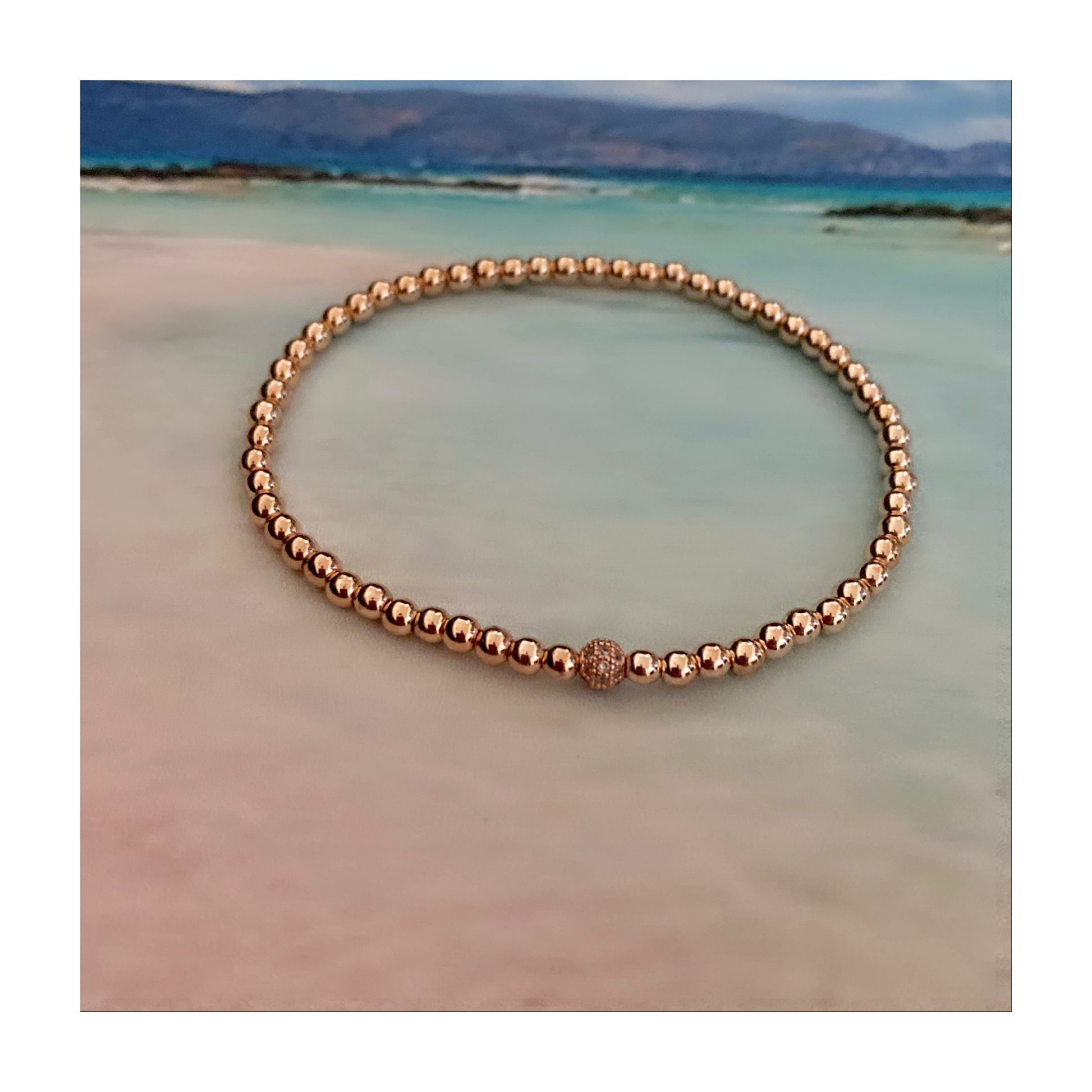 #1 Perles d'hématite plaquées or rose 2 mm et perle cz plaquée or rose 2 mm (extensible),