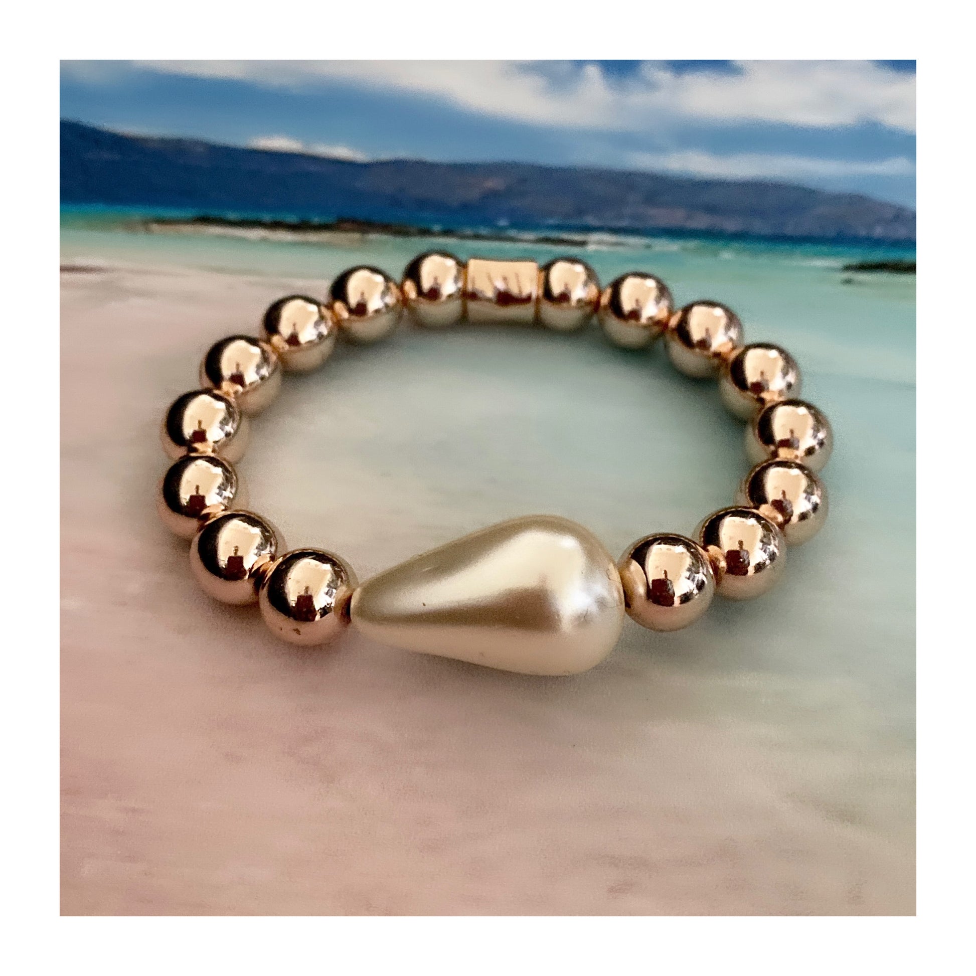 #6 Hématite plaqué or rose 10mm & larme f aux perle (stretch),