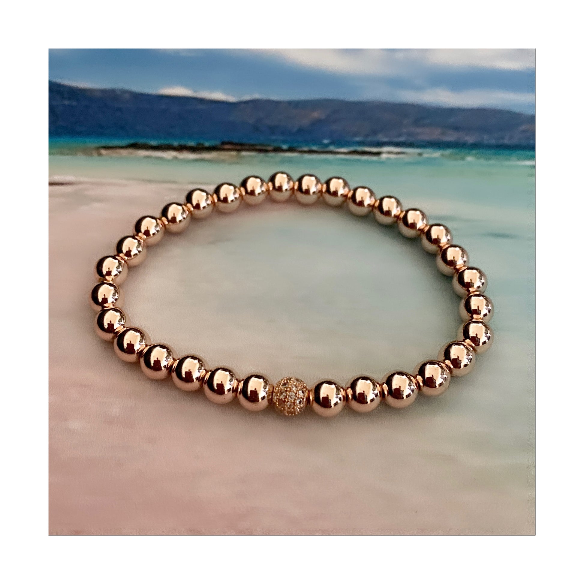 #5 Hématite plaquée or rose 6 mm et perle cz plaquée or rose 6 mm (extensible),