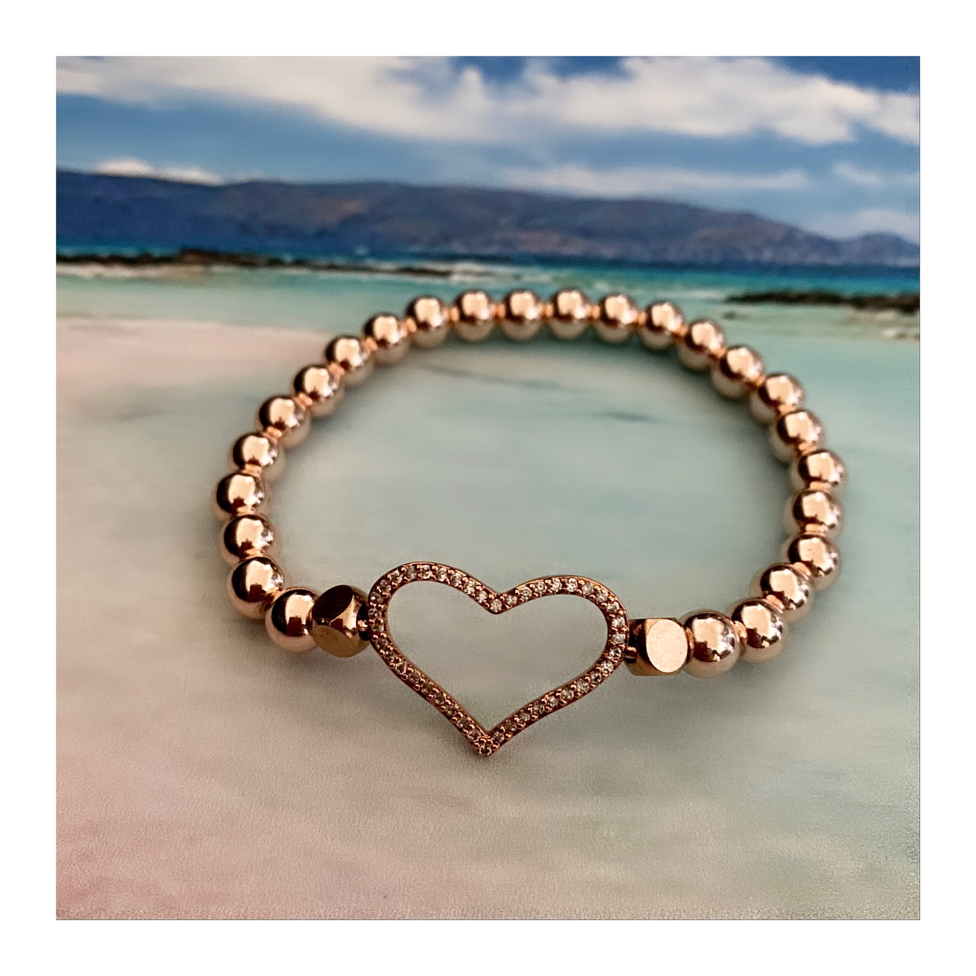 #3 Perles d'hématite plaquées or rose 6 mm avec coeur en oxyde de zirconium plaqué or rose (extensible),