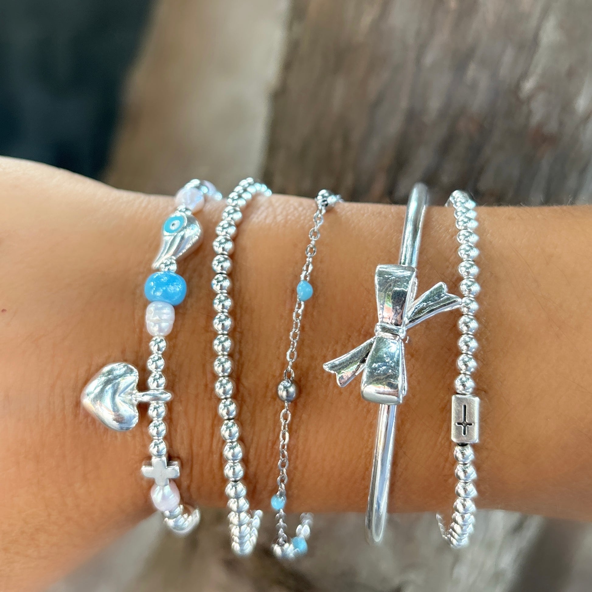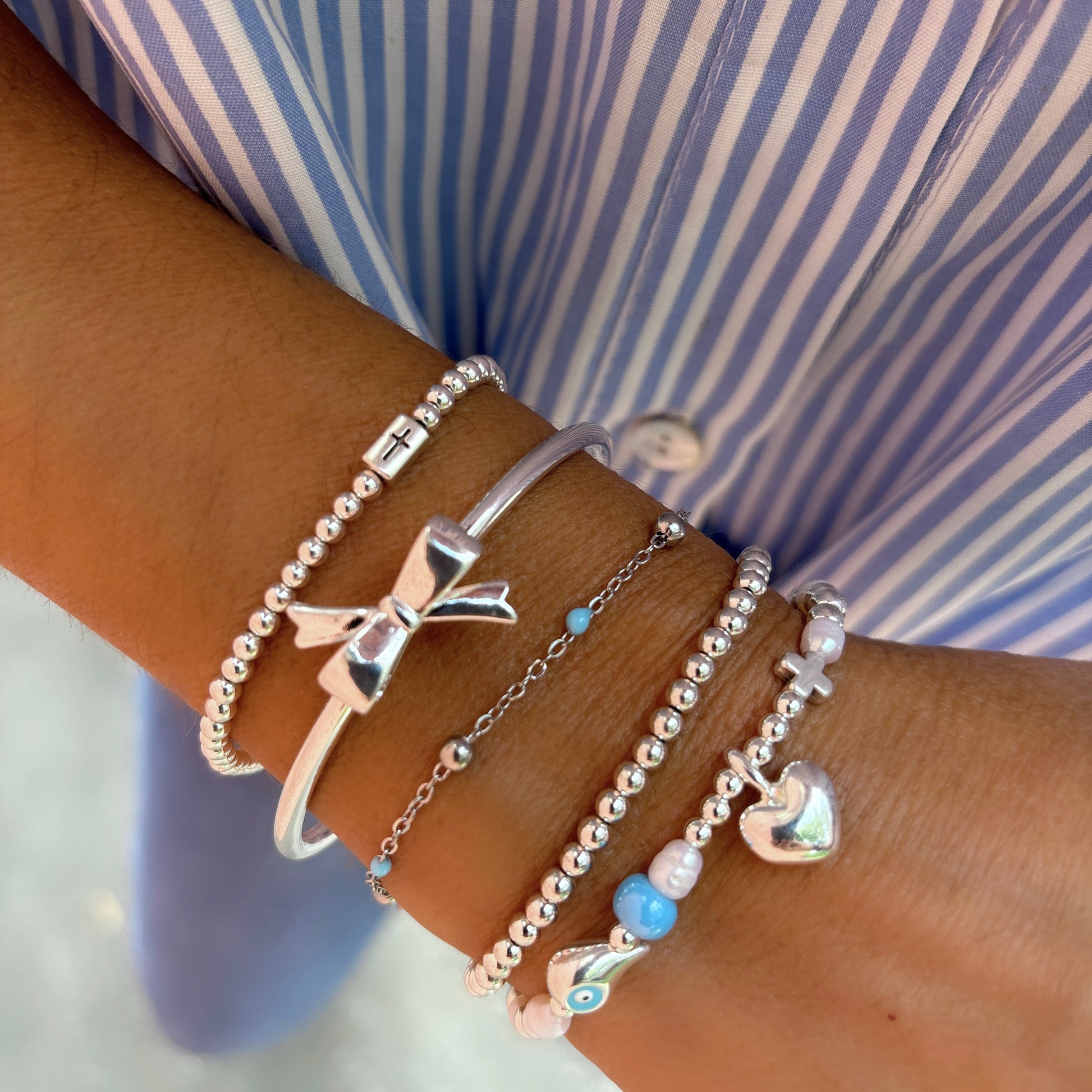 Magnifiquement confectionnés avec des perles plaquées argent de haute qualité, des perles d'eau douce, des breloques et une manchette en forme de nœud, nos bracelets Brandy ajoutent une touche d'élégance à n'importe quelle tenue. Le complément parfait à votre collection de bracelets, ces bracelets ne manqueront pas de faire sensation.
