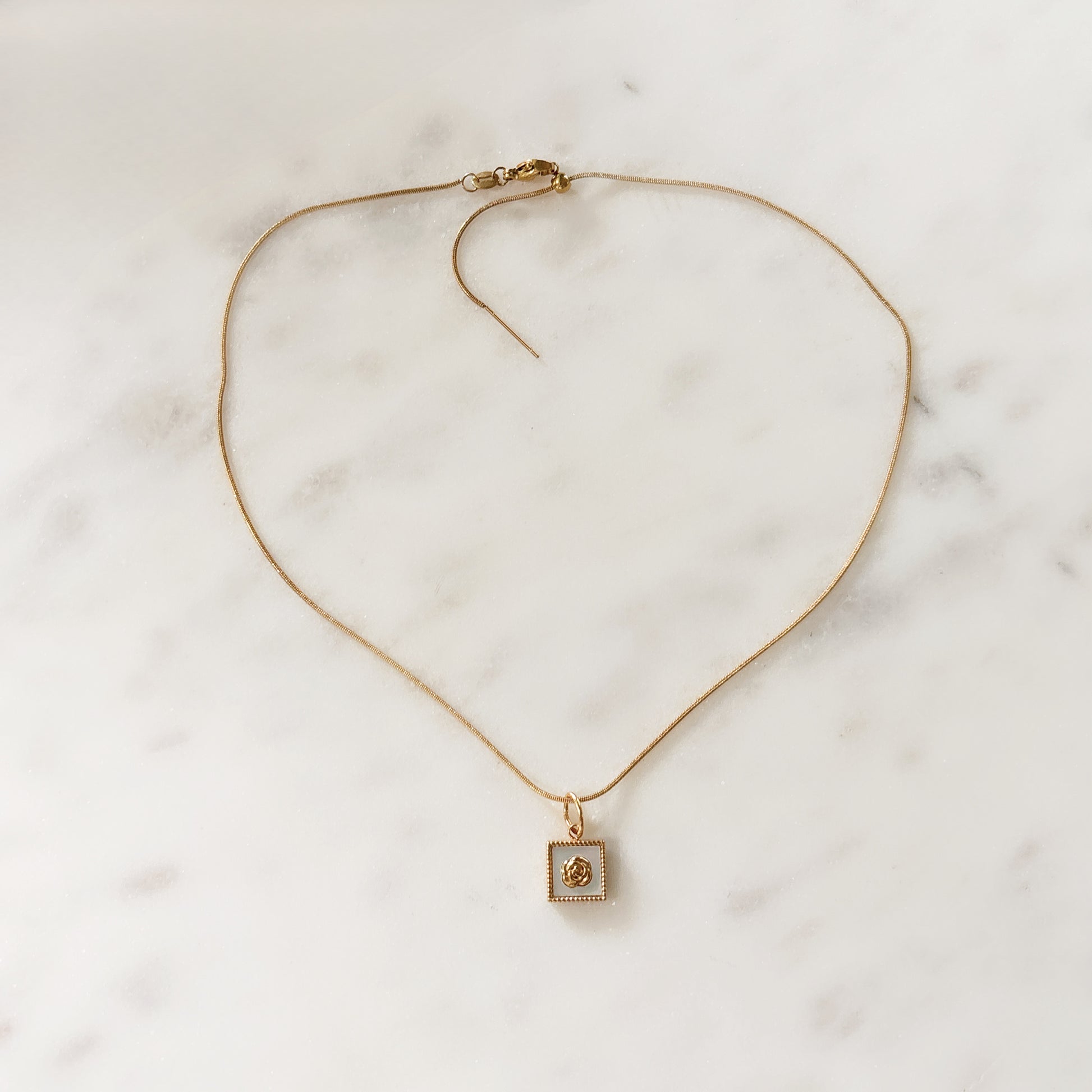 1. Chaîne en acier inoxydable avec fleur carrée (16" réglable au tour de cou)