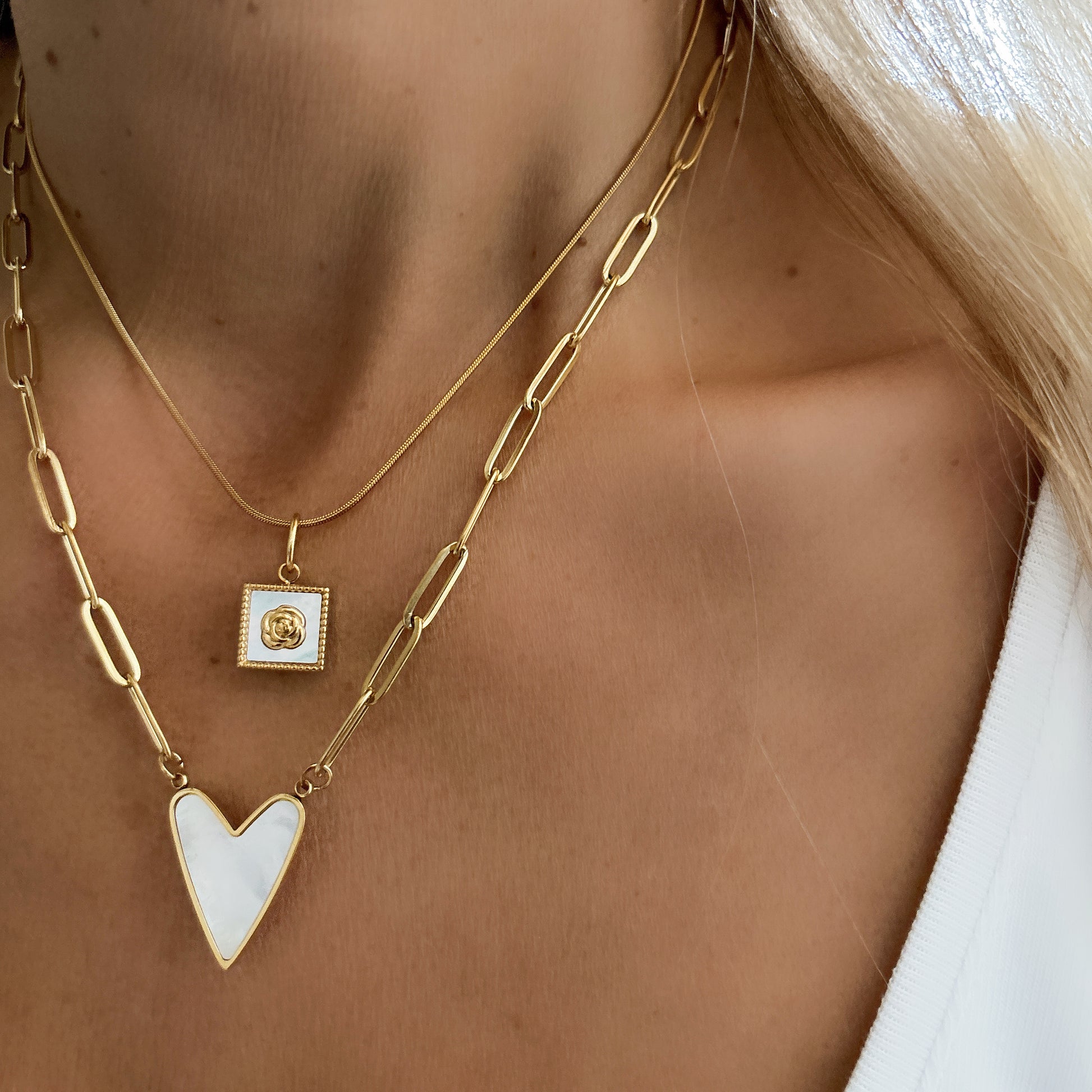 Révélez votre beauté intérieure avec nos colliers Camellia dotés d'un délicat pendentif fleur carré sur une chaîne réglable, d'un pendentif cœur tendance sur une chaîne trombone en acier inoxydable. Portez-les seuls ou superposés pour un look chic et polyvalent. Rehaussez votre style avec ces pièces uniques et élégantes.