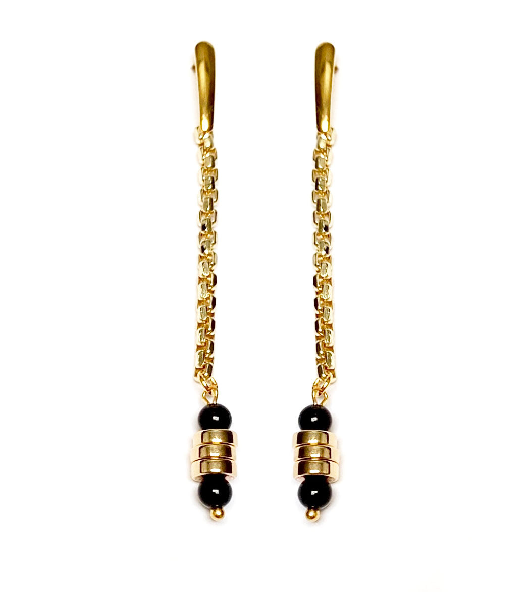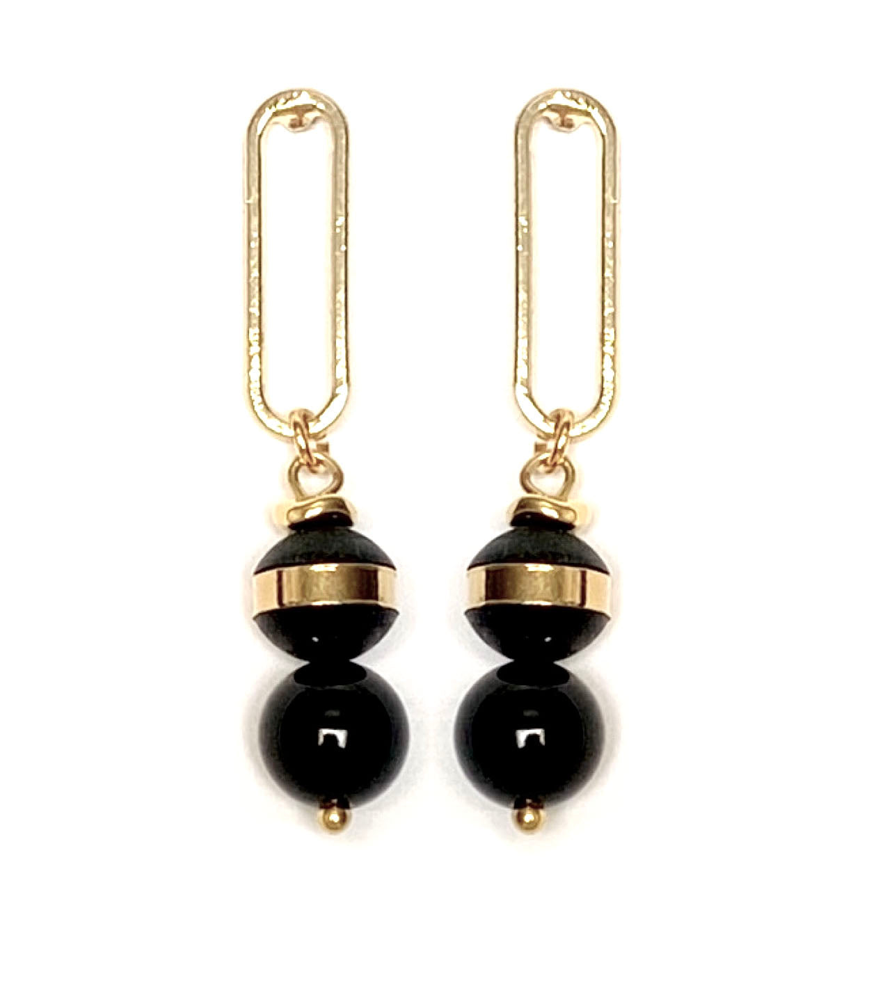 #4 Lien trombone plaqué or avec perles d'onyx et d'onyx mat de 8 mm (goutte de 1,5 pouce)