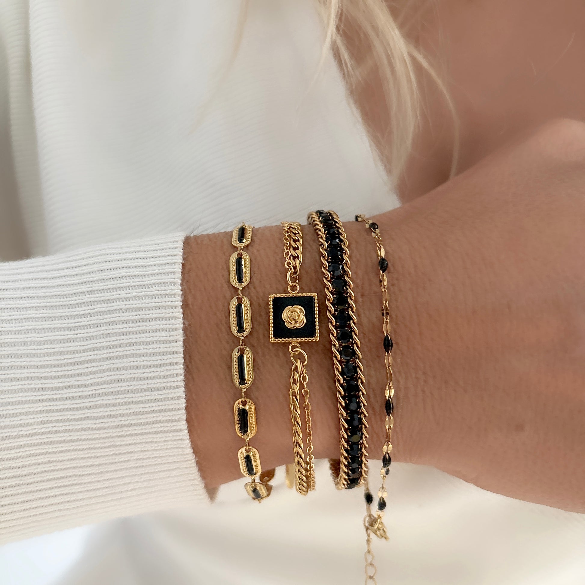 Rehaussez votre style avec nos BRACELETS COCO. Ces superbes bracelets sont disponibles dans des tons noirs et dorés et peuvent être superposés pour un look audacieux et unique. Chaque bracelet est vendu séparément, ce qui vous permet de les mélanger et de les assortir pour créer votre propre style personnalisé. Ajoutez une touche de sophistication et de luxe à n'importe quelle tenue avec nos BRACELETS COCO.