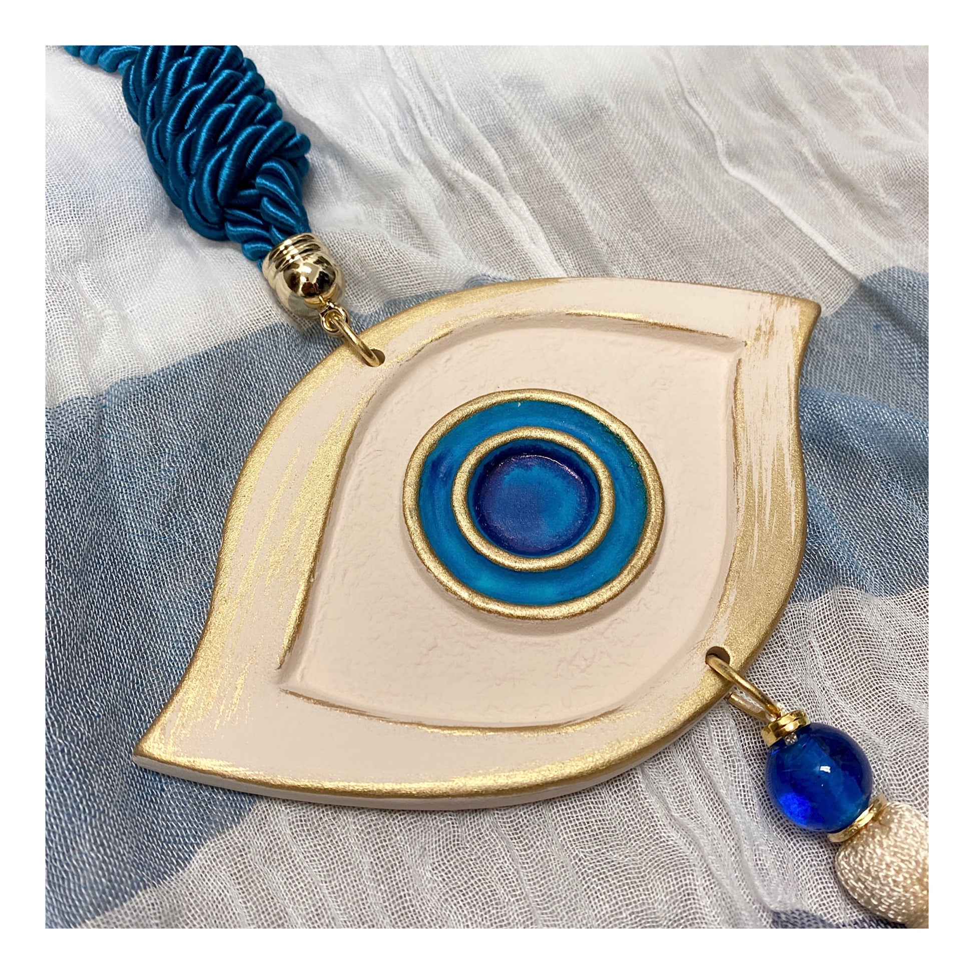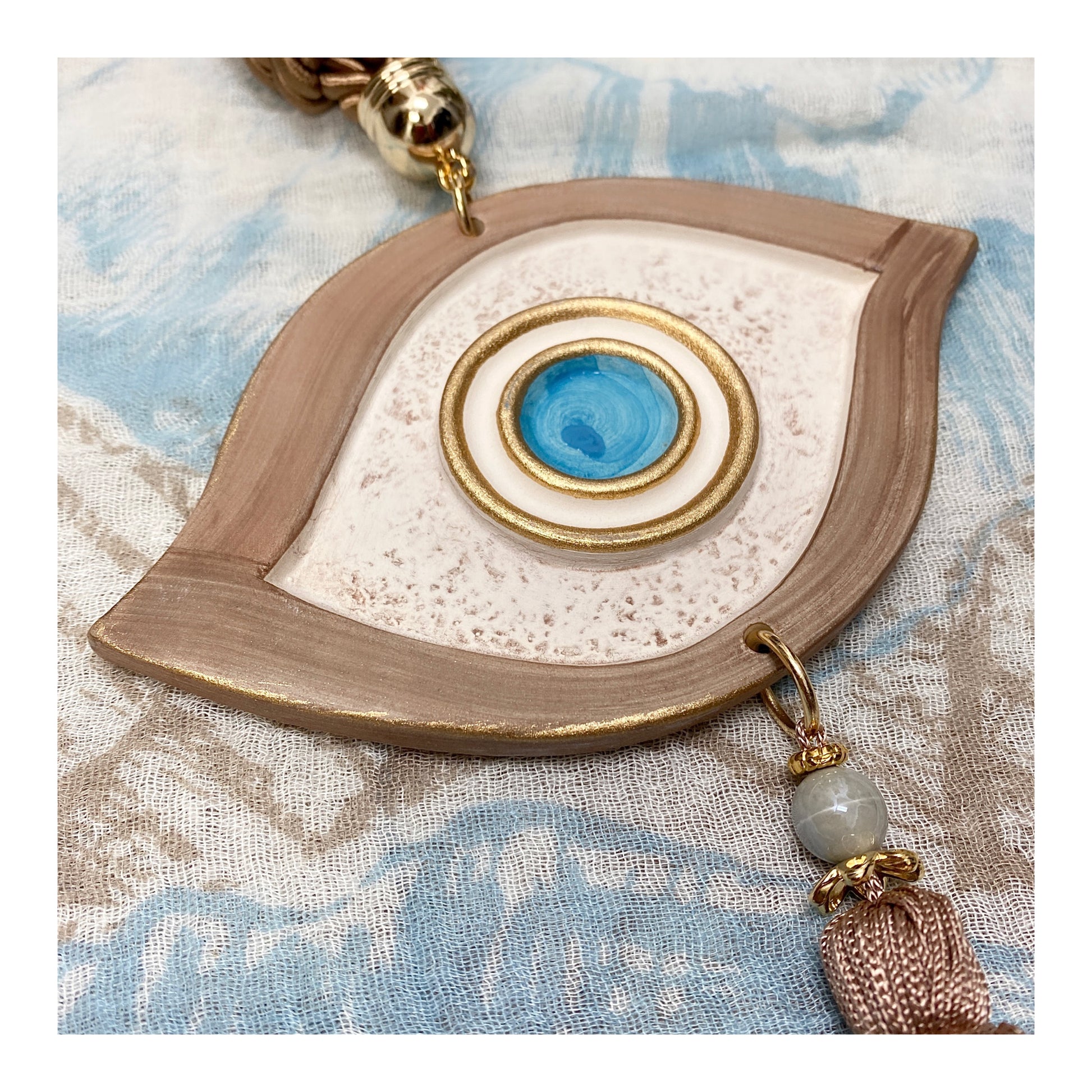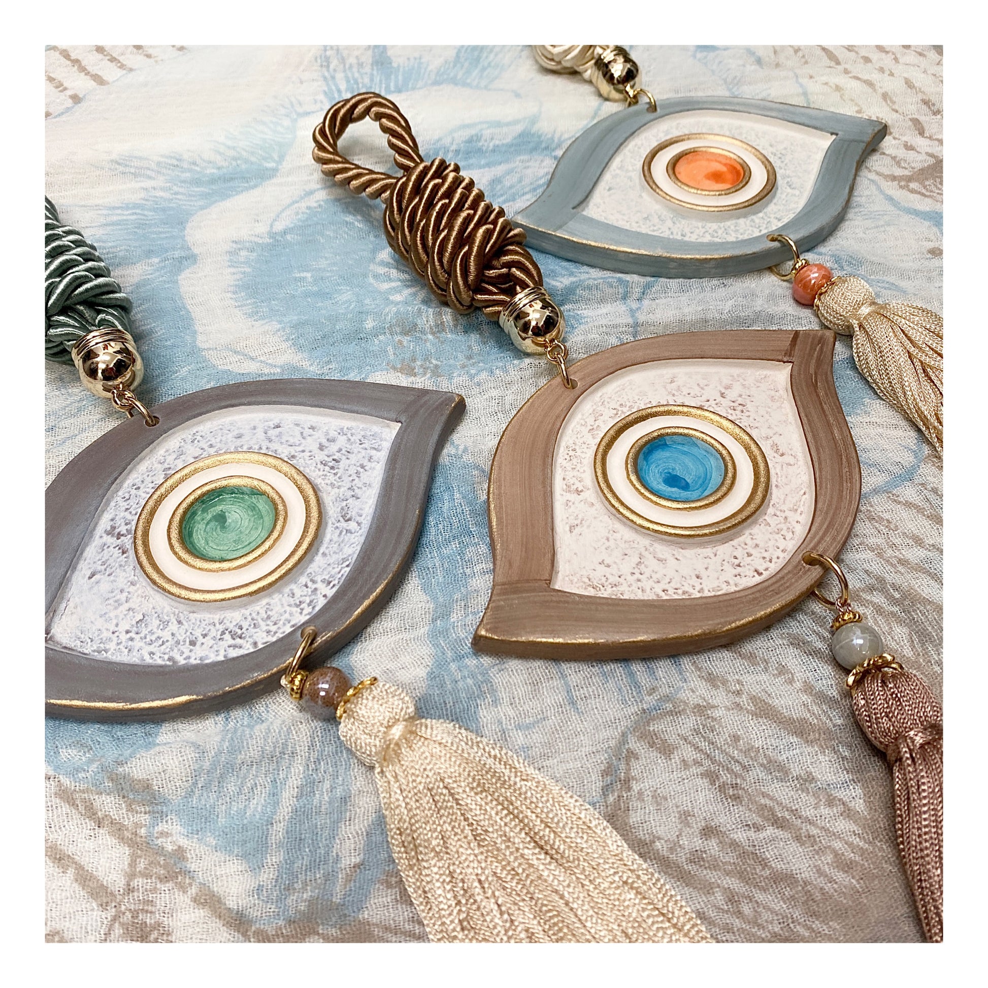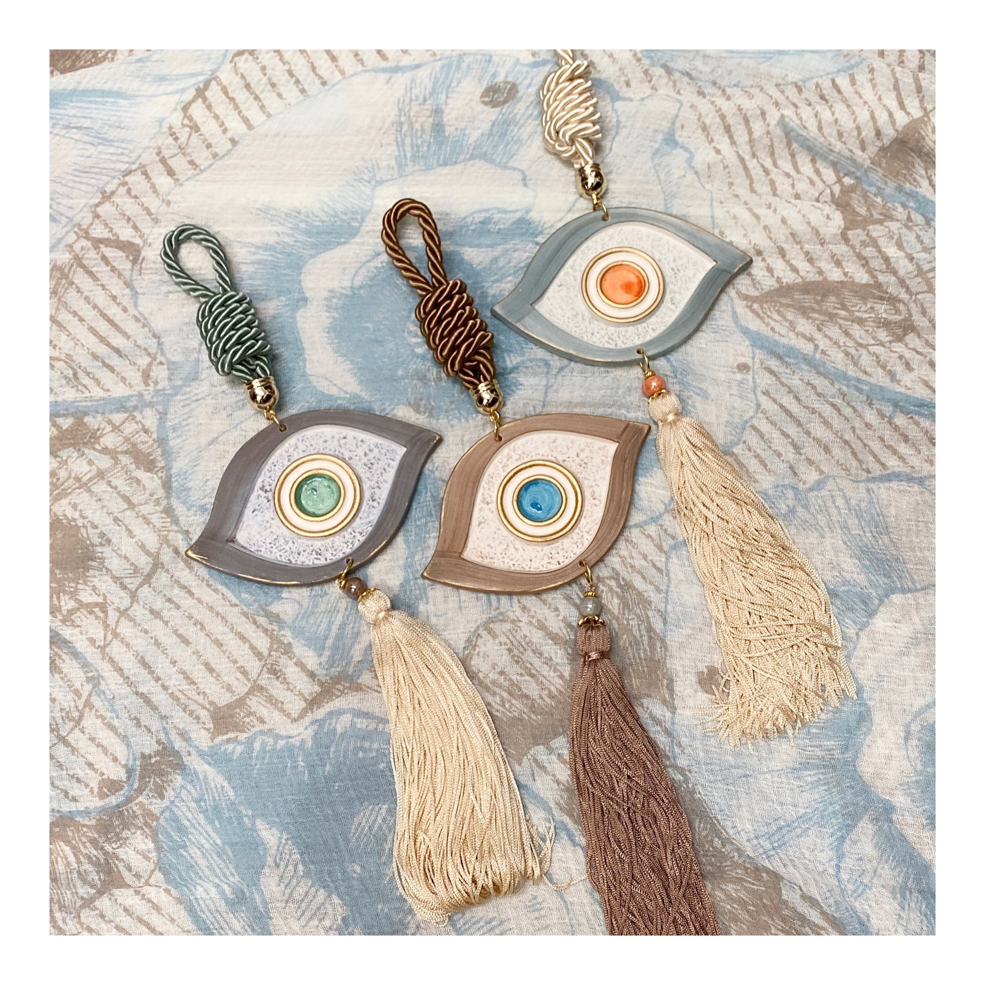 Décoration en céramique faite à la main contre le mauvais œil avec pompon