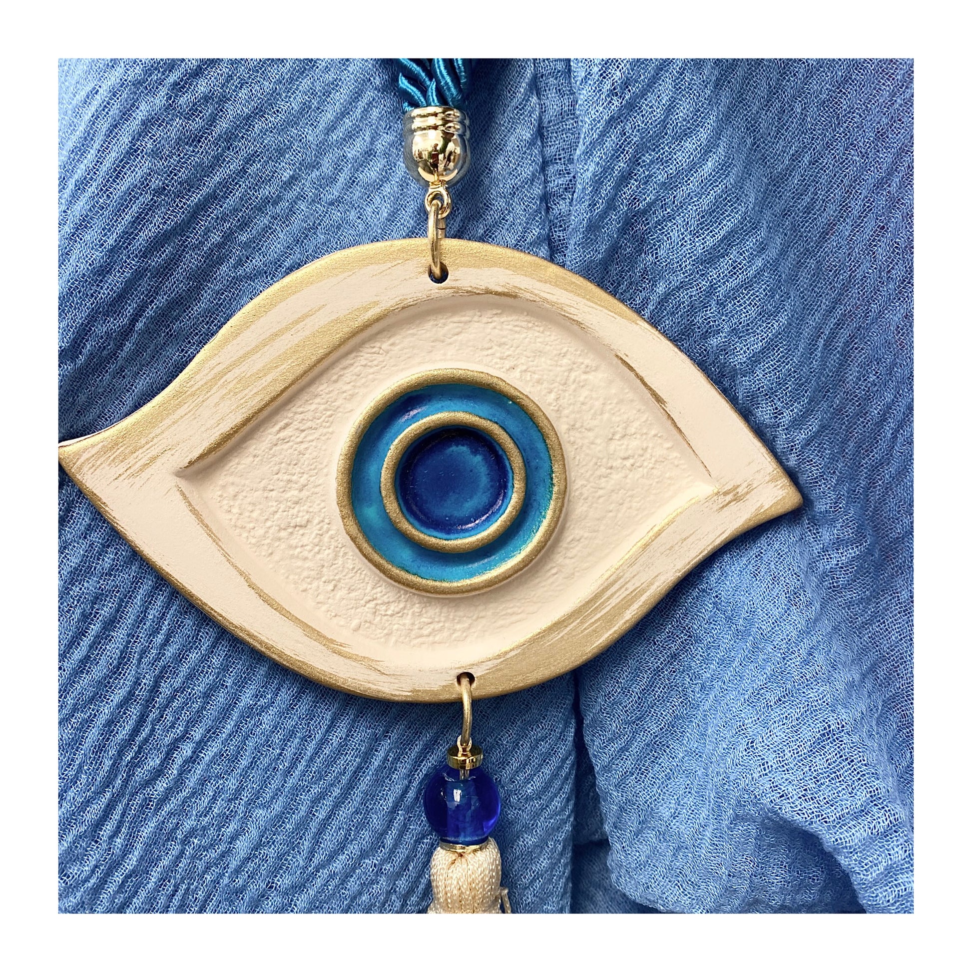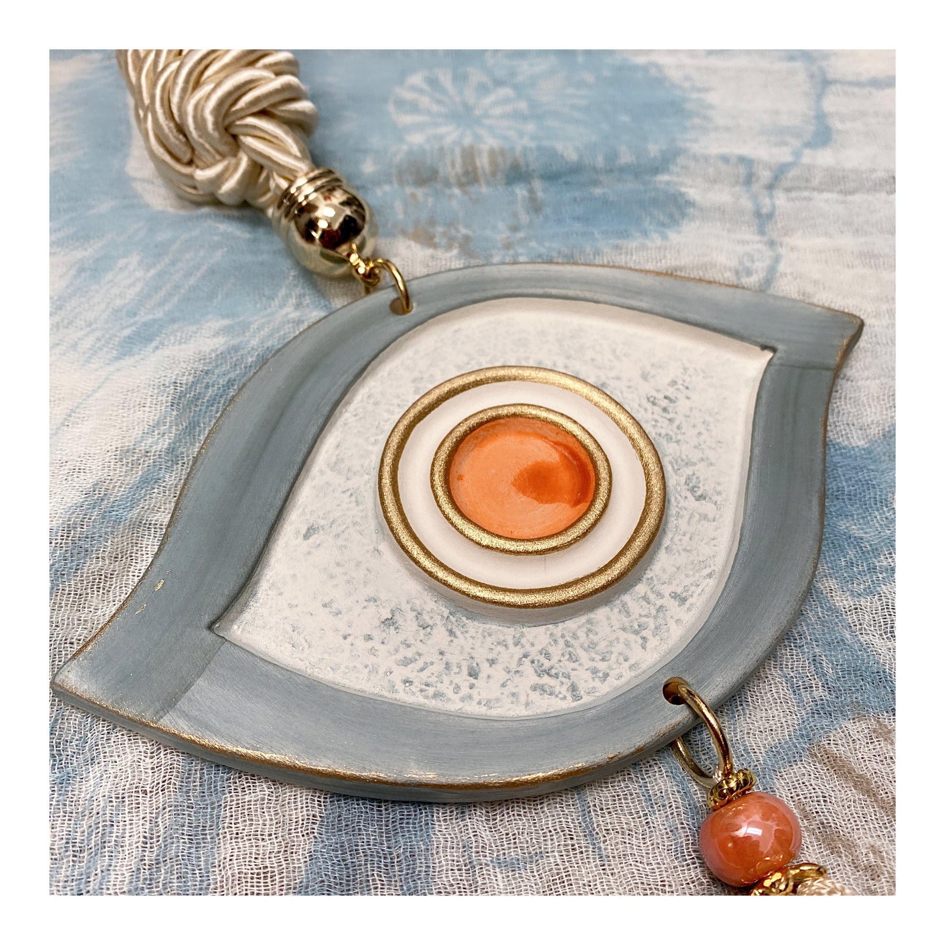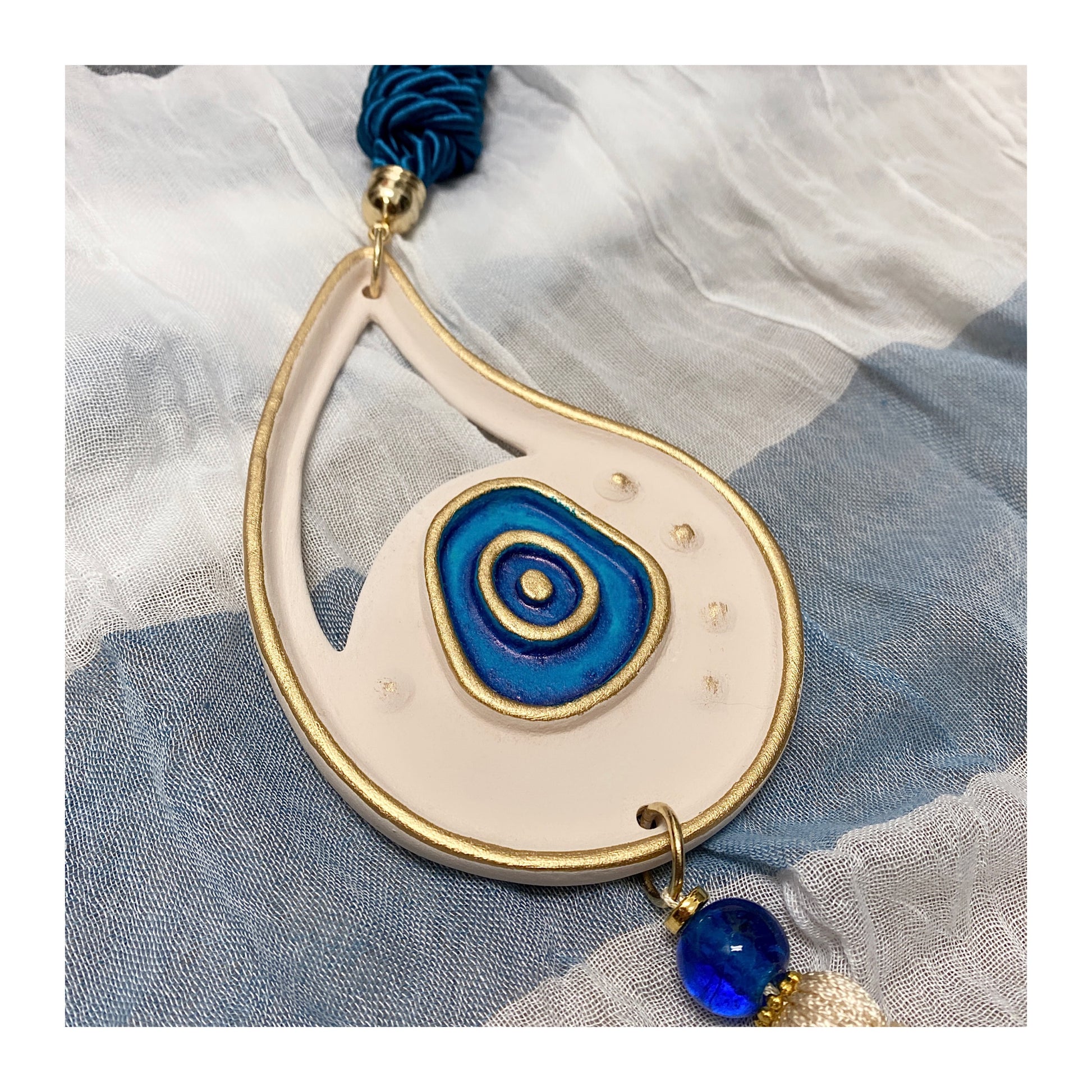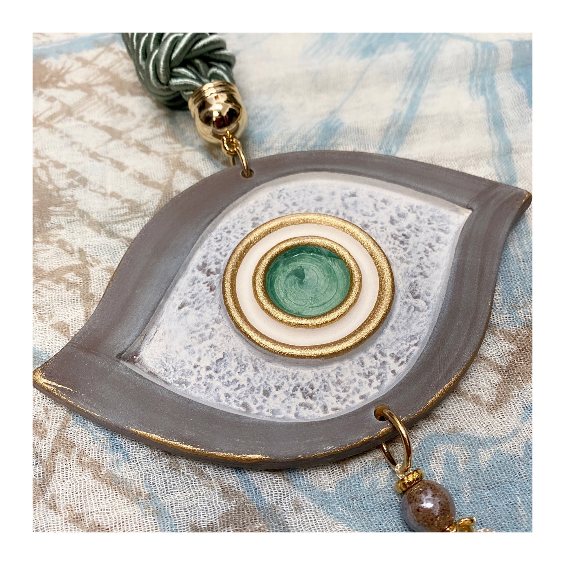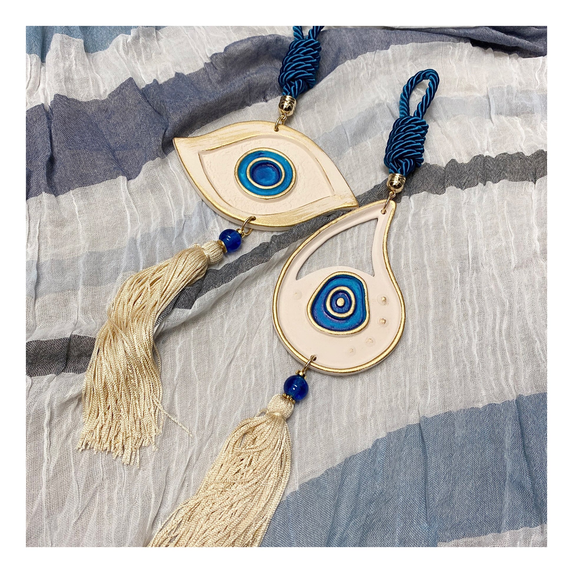 Décoration en céramique faite à la main contre le mauvais œil avec pompon