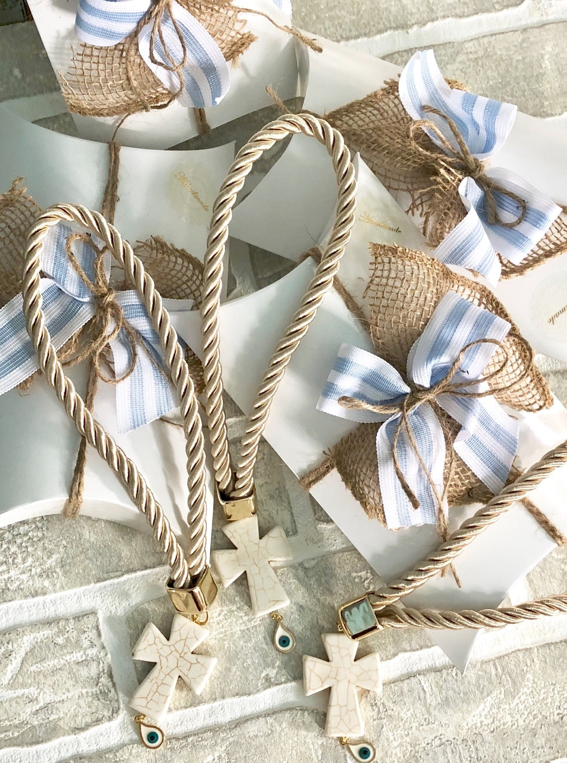 Breloque croix en pierres précieuses avec petit breloque mauvais œil pour faveur de baptême (bonbonier). Emballage inclus dans le prix. Le prix est pour 25 pièces (le charme des yeux peut varier)