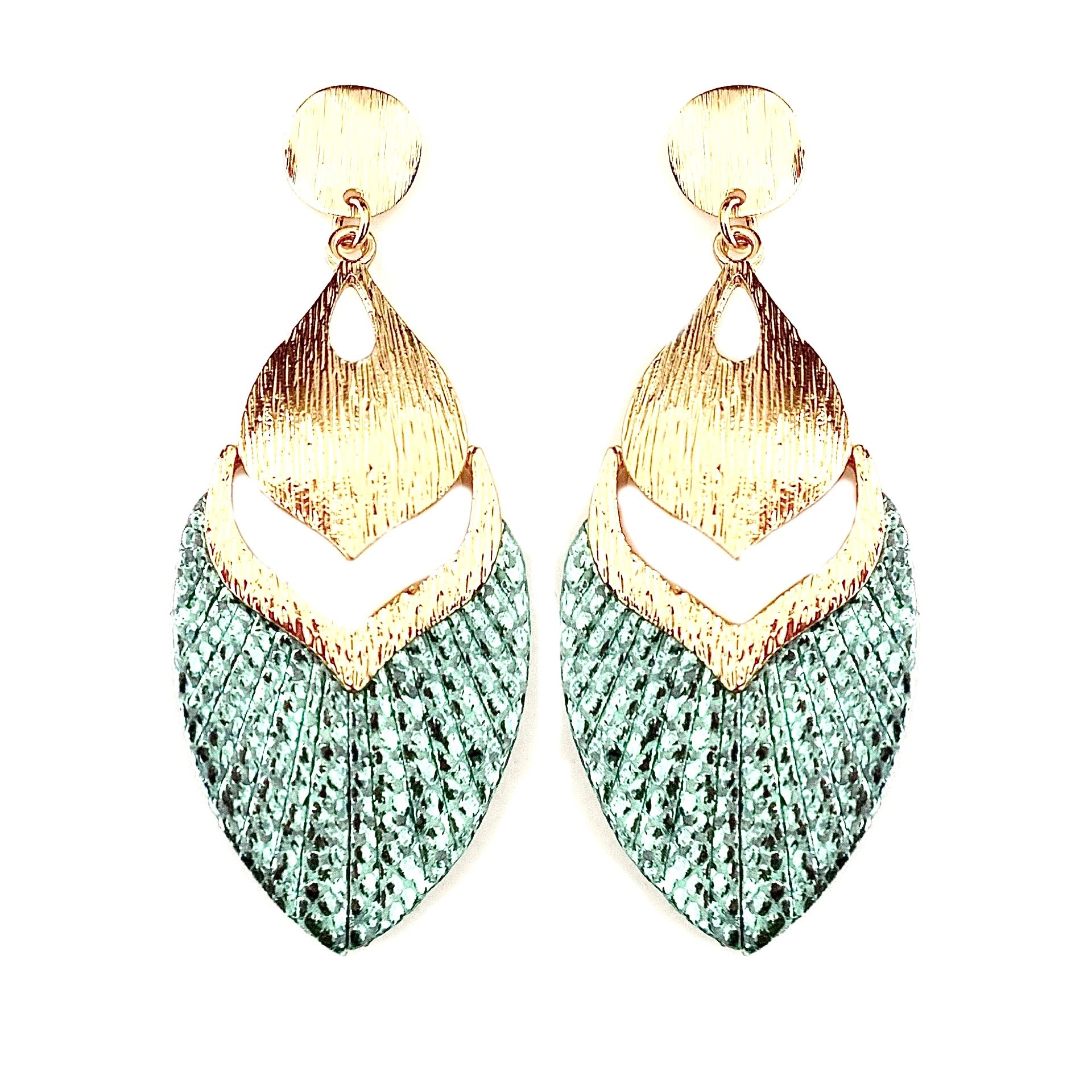 Boucle d'oreille clou en laiton avec pendentif en alliage de zinc et cuir vegan plaqué or