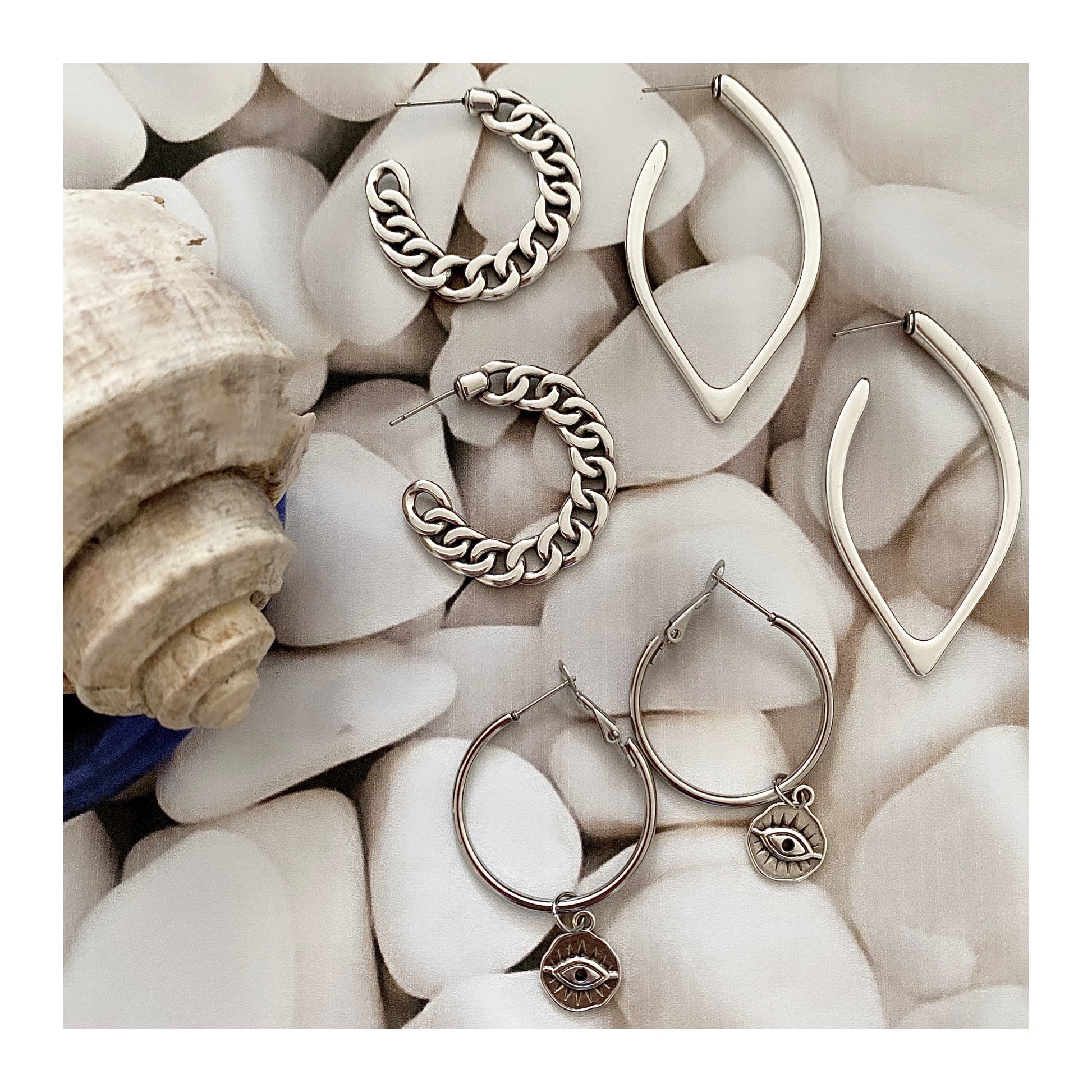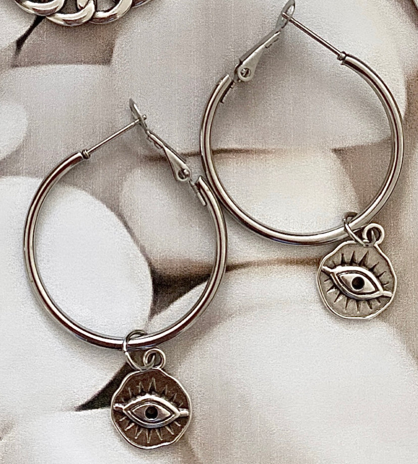 #3 Créoles rondes en acier inoxydable avec breloque mauvais œil