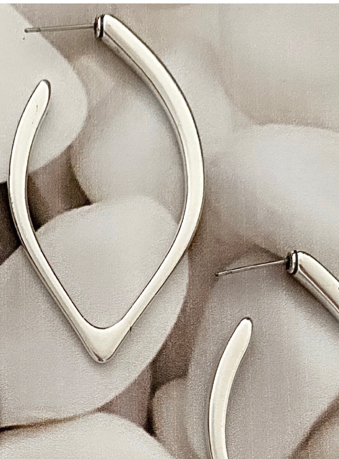 #2 Boucle d'oreille ovale en forme de larme plaquée argent