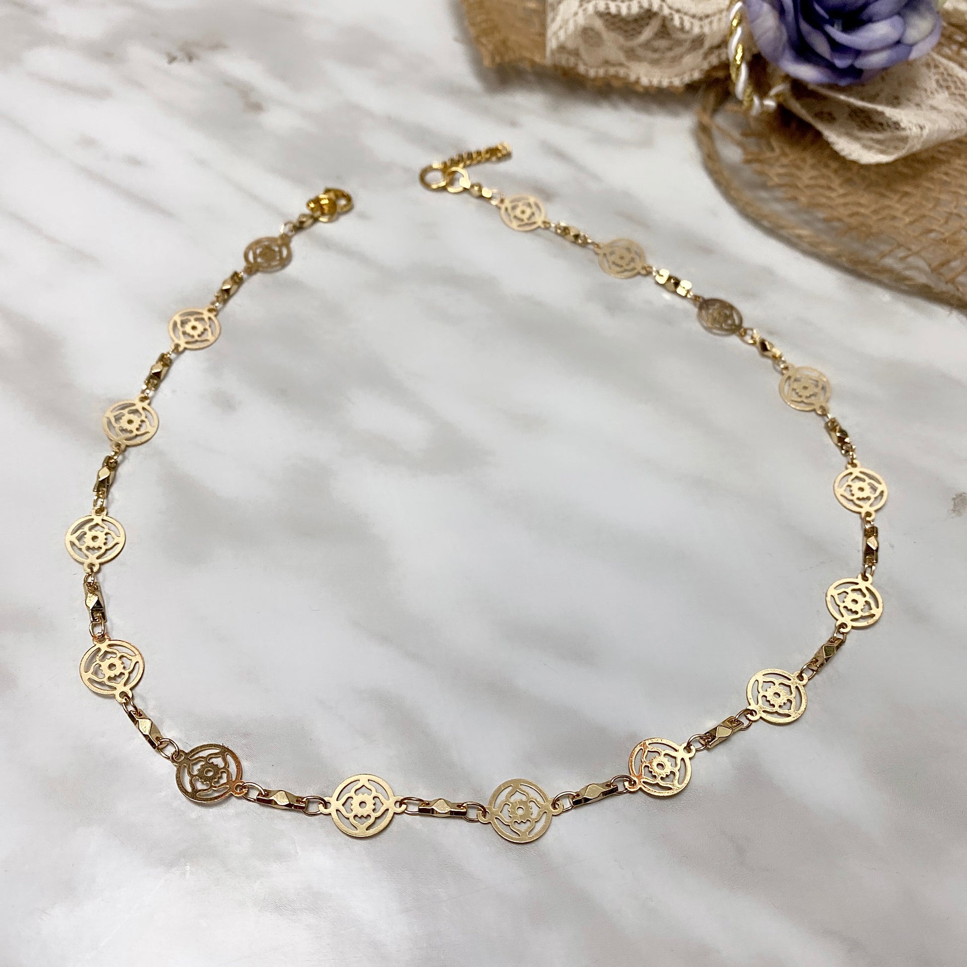 Chaîne fantaisie #1 en laiton plaqué or, mesurant 14" de longueur avec extension.