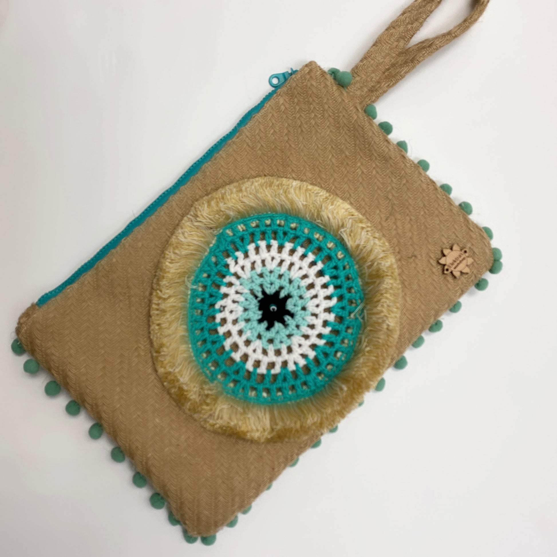 POCHETTE AU CROCHET TURQUOISE ET BLANC MAL EYE - NAOMI