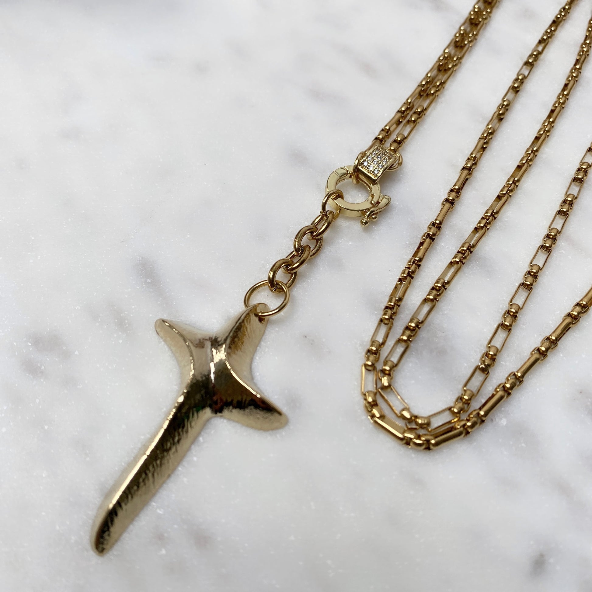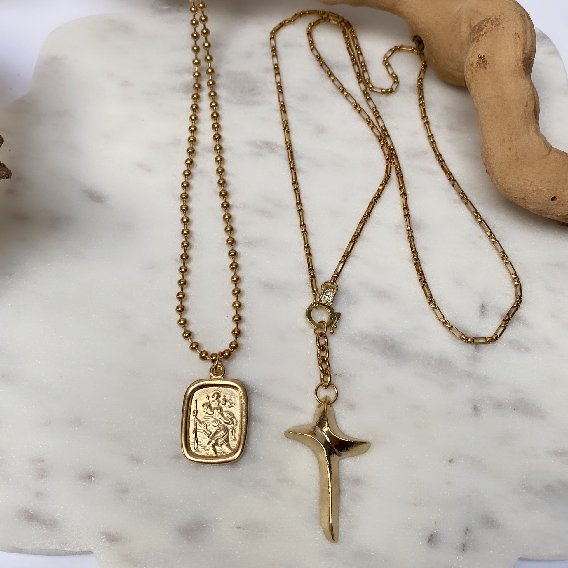 Chaînes en acier inoxydable plaqué or avec pendentif et croix