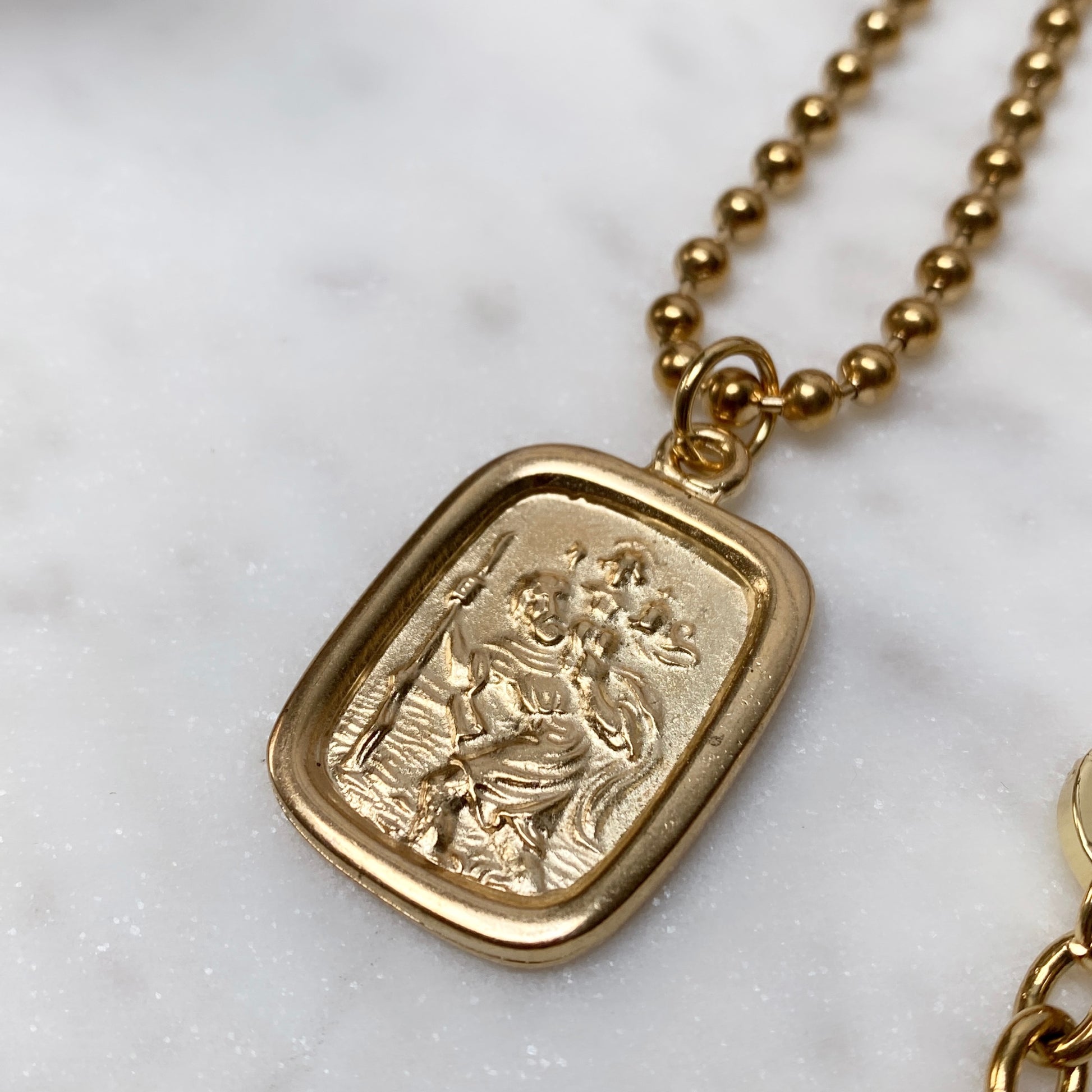 #1 Chaîne boule en acier inoxydable plaqué or avec pendentif plaqué or mesurant 28,5 pouces
