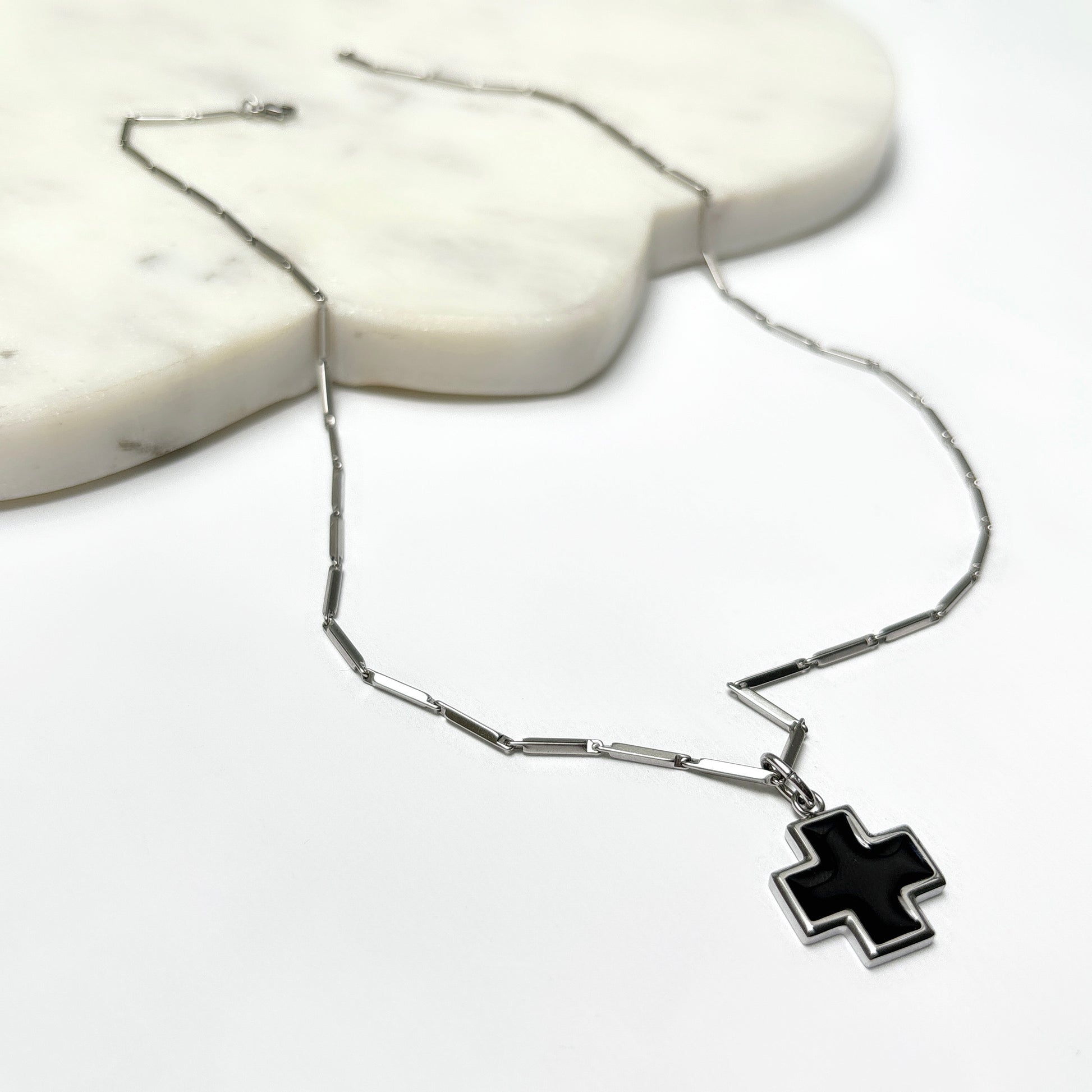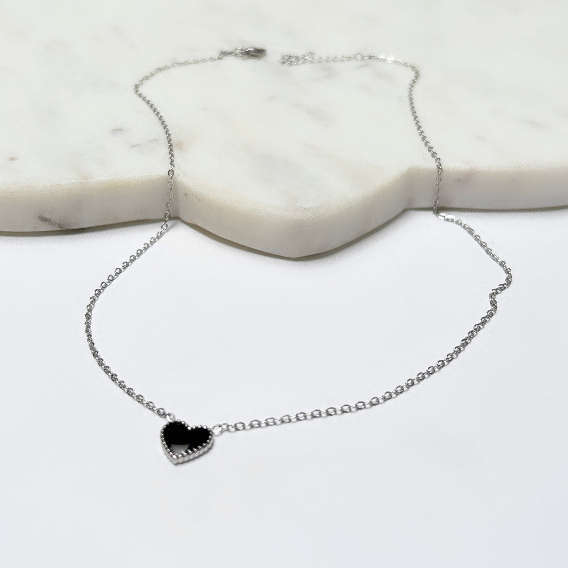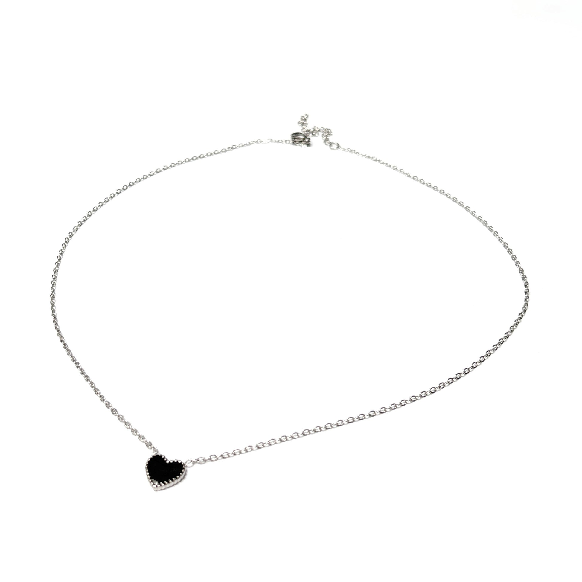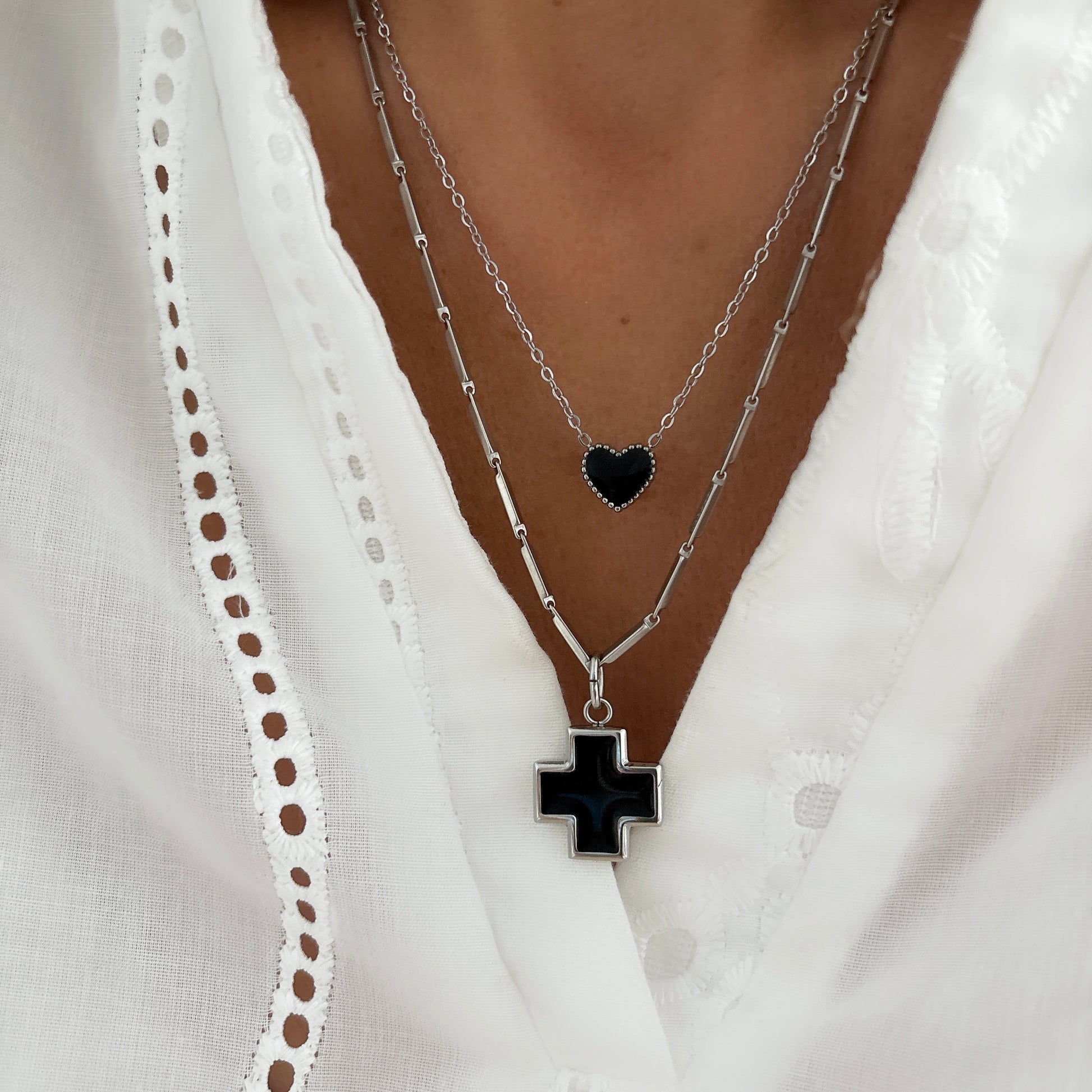 Ces colliers en acier inoxydable sont ornés d'un délicat pendentif en forme de cœur noir et d'une croix en émail noir. Polyvalents et élégants, portez-les ensemble pour une déclaration audacieuse ou séparément pour un look plus délicat. Fabriqués avec des matériaux de haute qualité, ces colliers sont un ajout indispensable à votre collection de bijoux.