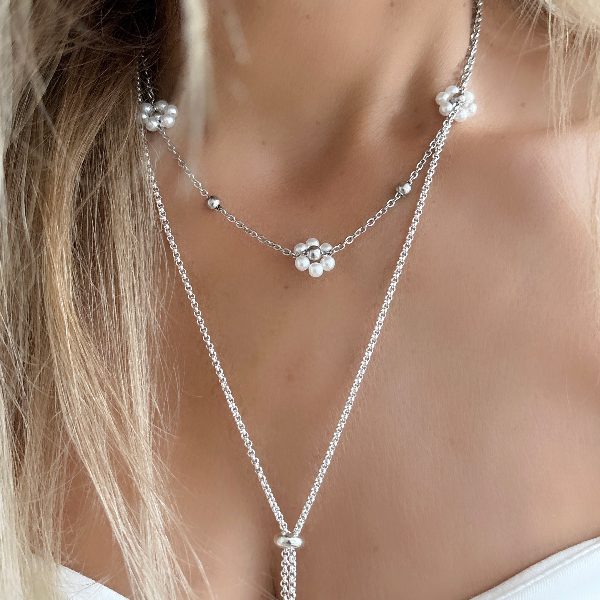 Découvrez la touche florale parfaite pour votre look quotidien avec nos COLLIERS DAISY. Cet ensemble superposé comprend un délicat collier de fleurs en perles associé à un élégant collier lariat, réglable avec des gouttes de perles. Accentuez votre style avec cet accessoire intemporel et polyvalent.