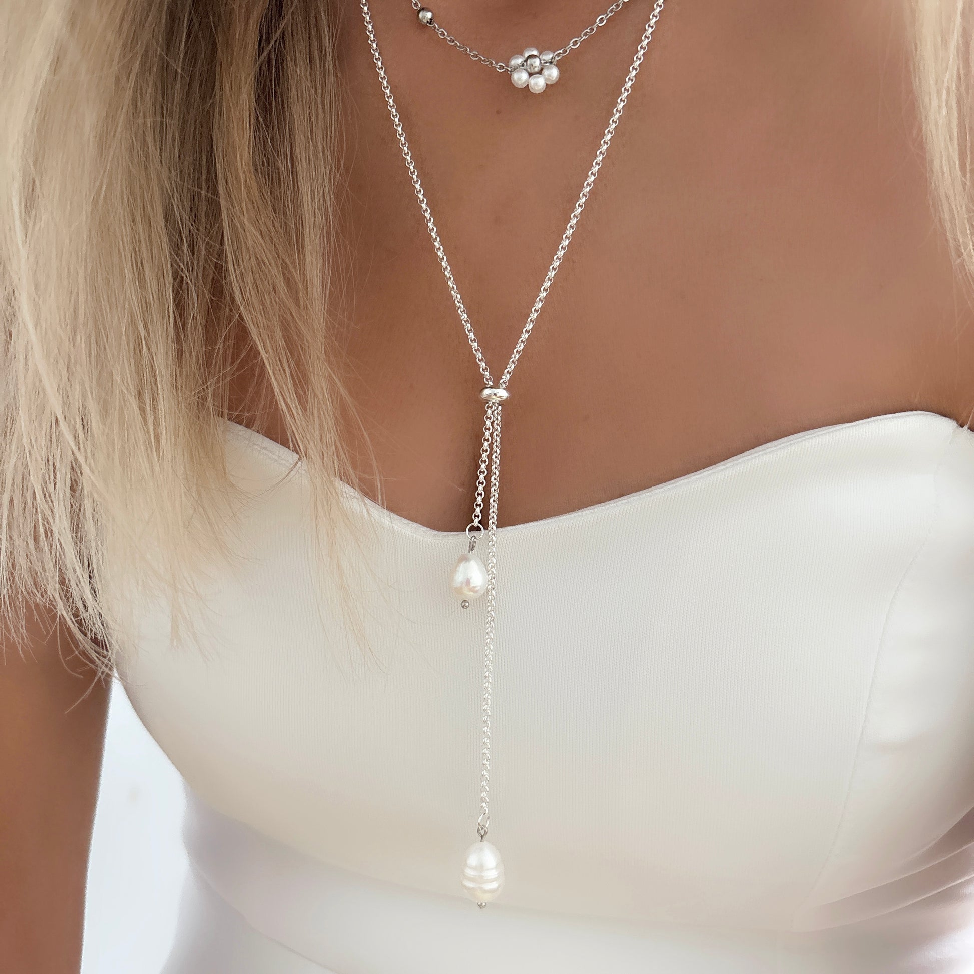 2. Collier lariat avec gouttes de perles (longueur totale de 26")