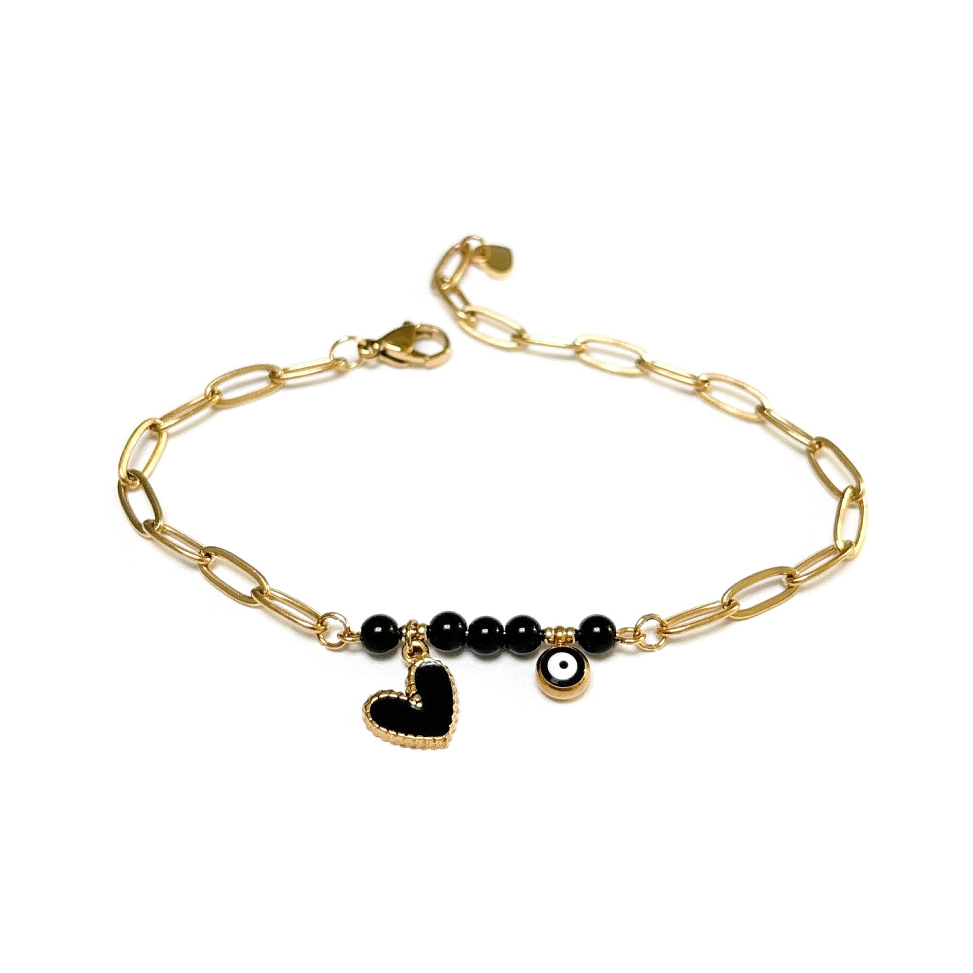 3. Bracelet à breloques trombone avec cœur et mauvais œil, longueur totale de 8,5"