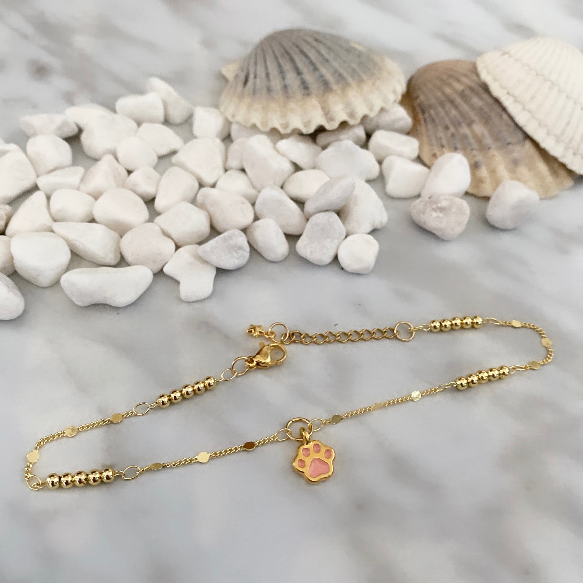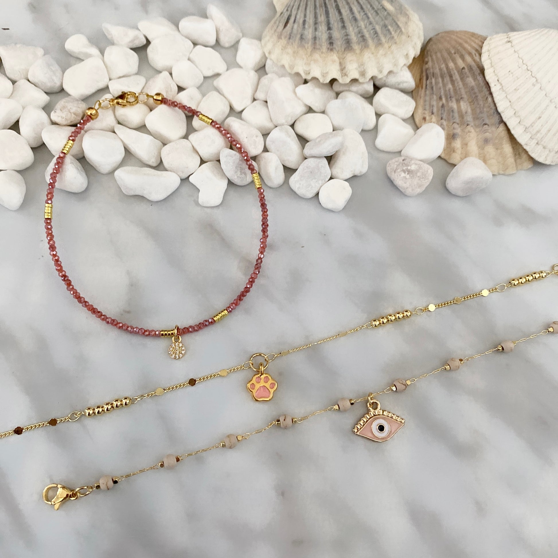 Belle variation de bracelet de cheville plaqué or avec chaînes en acier inoxydable et en laiton et accents roses