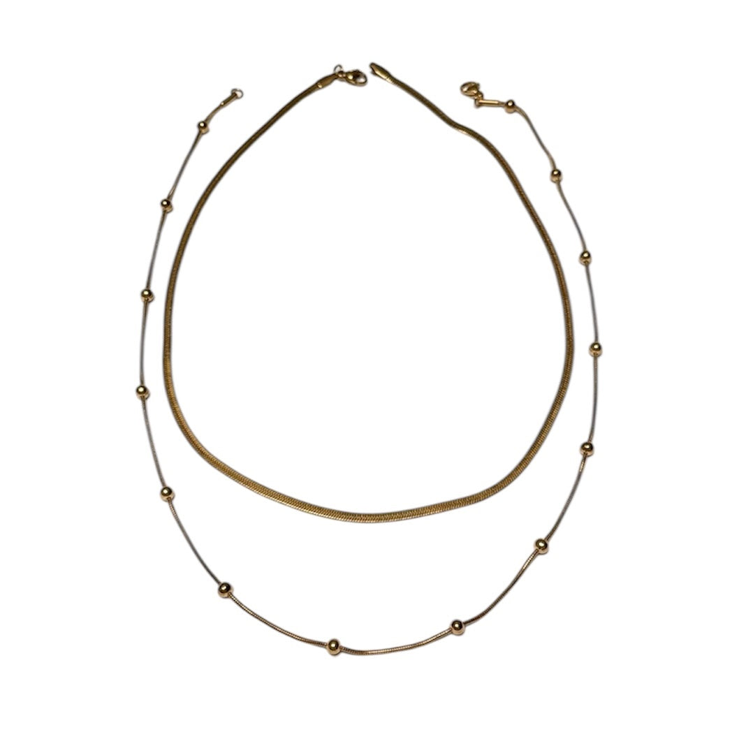 Libérez votre glamour intérieur avec ces COLLIERS DOUBLES EN OR. Composé d'une chaîne serpent élégante et d'une chaîne à billes ludique, cet ensemble ajoute une touche de luxe à n'importe quelle tenue. Parfaites pour être superposées ou portées séparément, ces chaînes en acier inoxydable plaqué or sont un incontournable pour toute collection de bijoux.