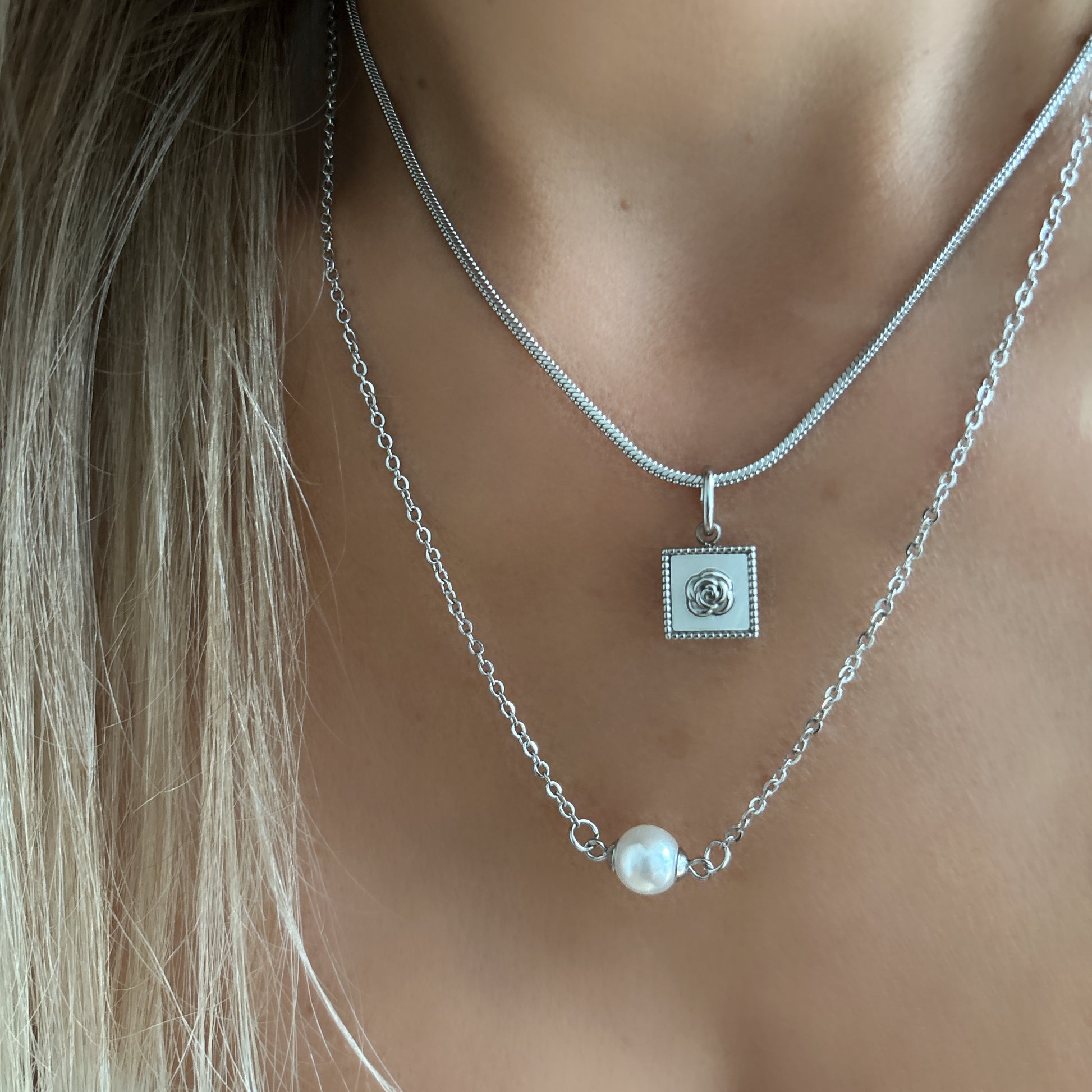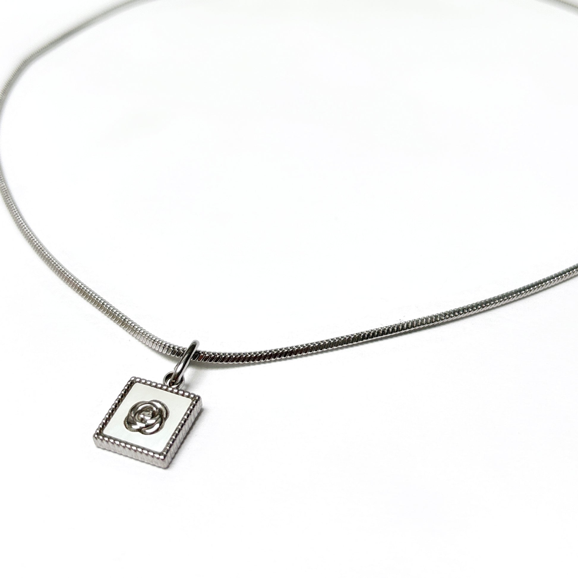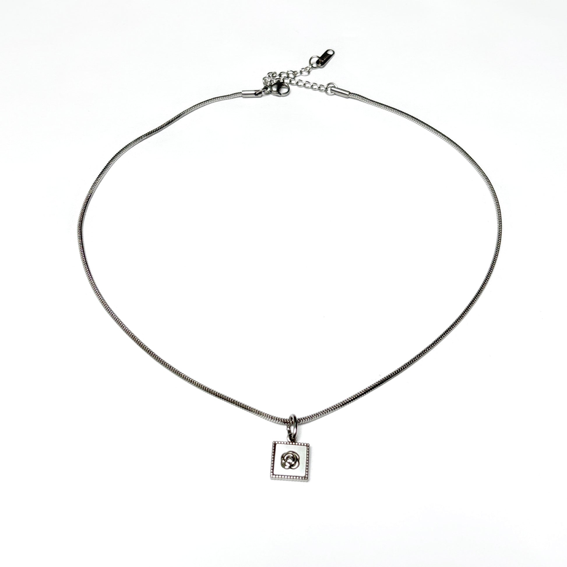 1. Coquillage carré avec pendentif en forme de fleur - (16" avec extension de 2")
