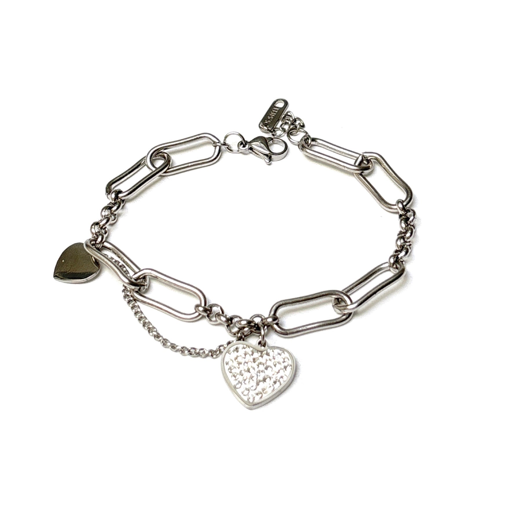 3. Chaîne épaisse avec breloques en forme de cœur (7" avec extension de 1")