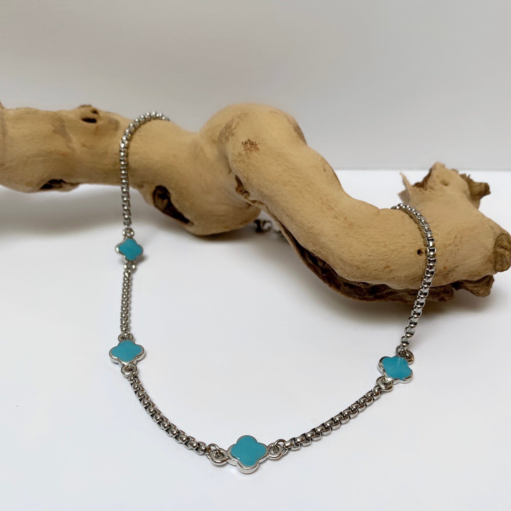 #1 Chaîne en acier inoxydable plaqué argent avec plusieurs croix turquoise mesurant 13 pouces
