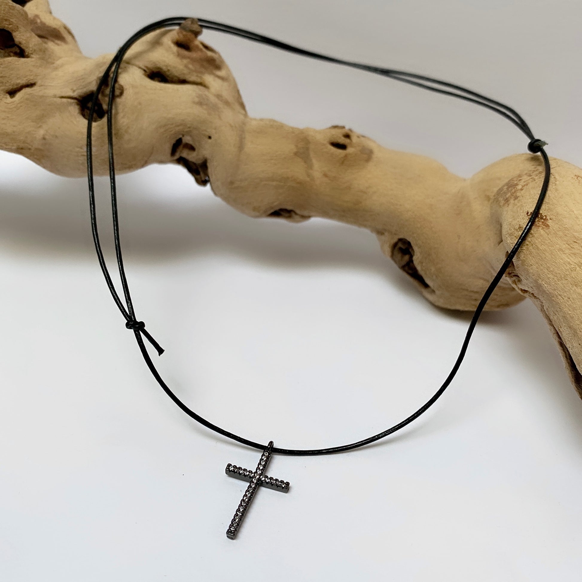 #4 Cordon avec croix délicate et scintillante mesurant 24 pouces maximum (réglable)