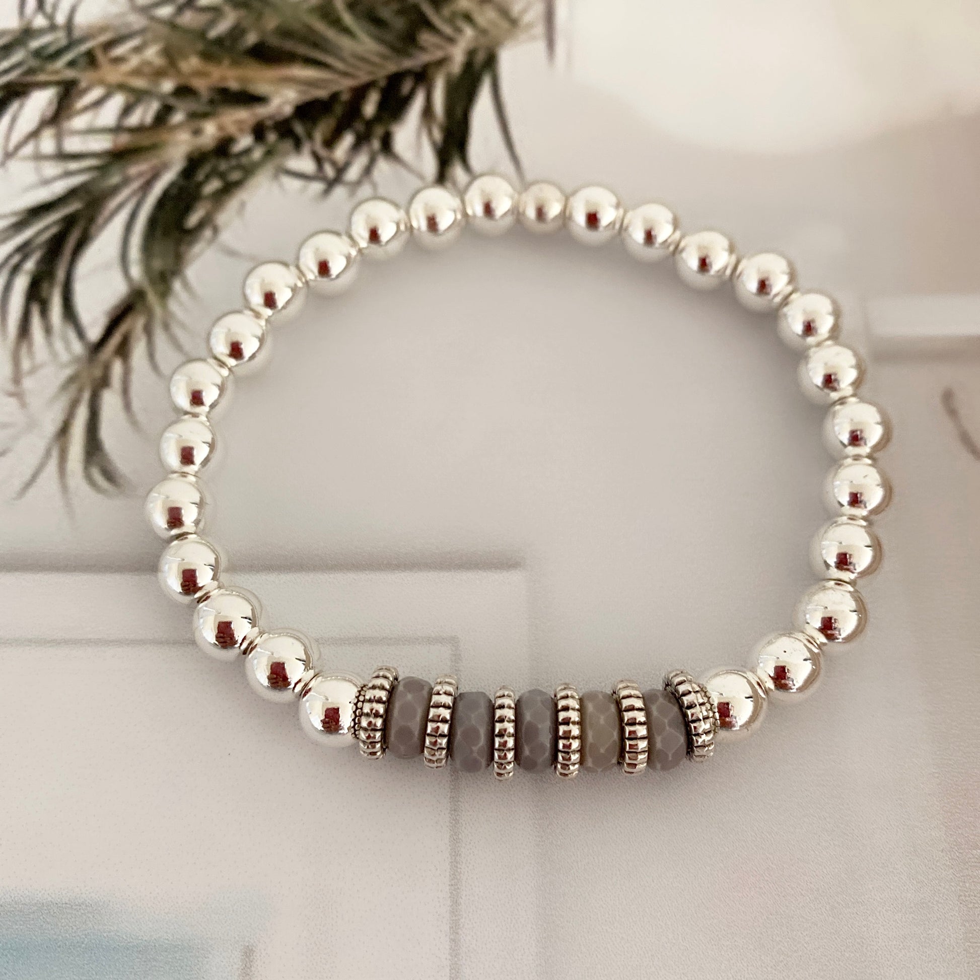 #3- Perles hématite plaqué argent 6mm avec perles en verre (stretch)