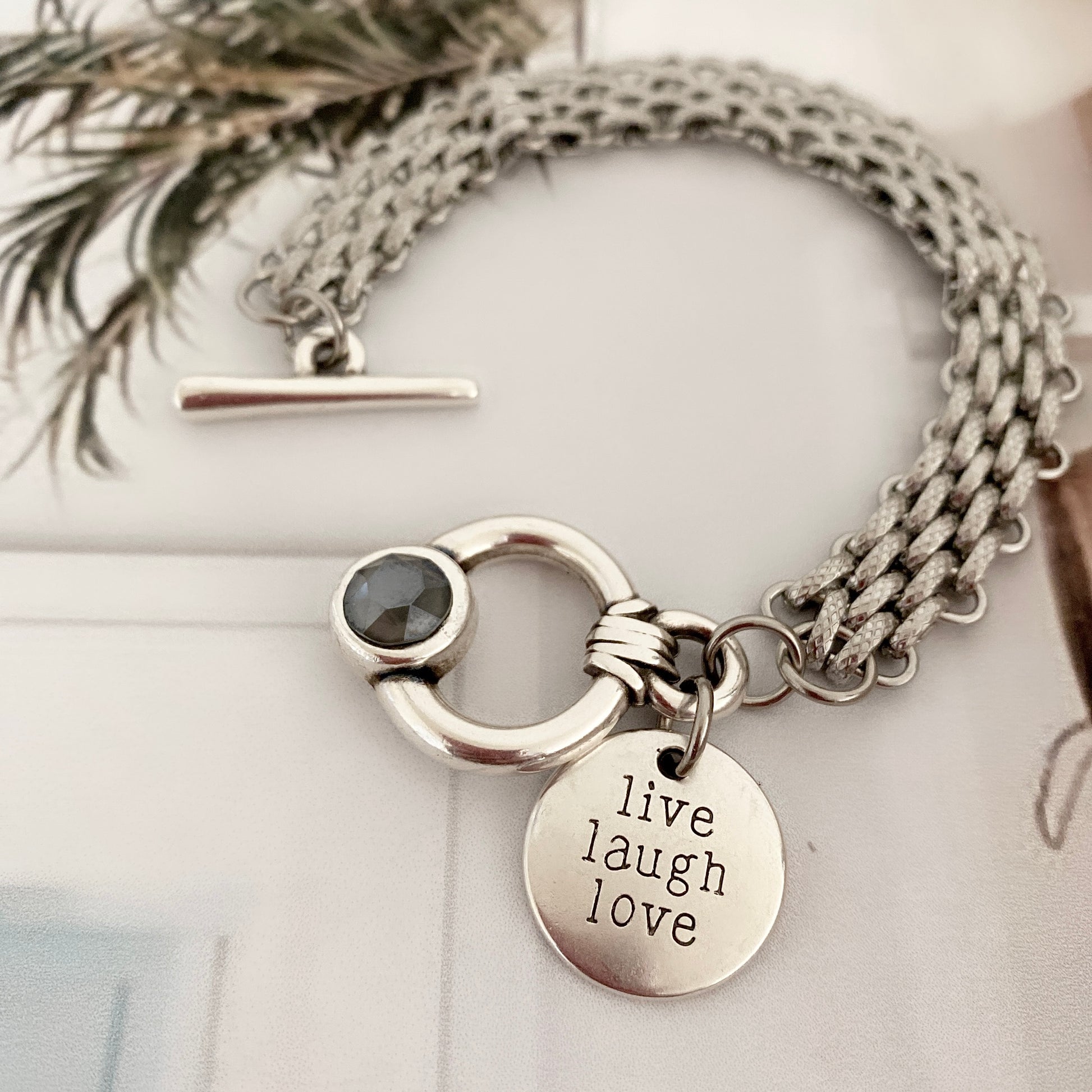 #4- Chaîne en acier inoxydable avec fermoir à bascule en cristal Swarovski et breloque suspendue plaquée argent - vivre-rire-amour