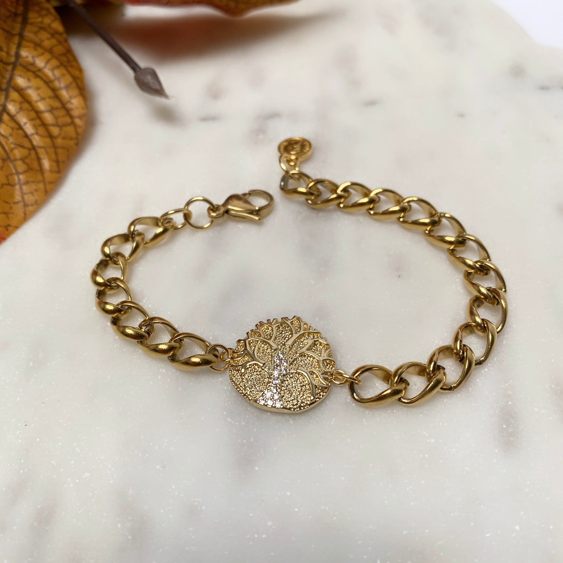 #3 Lien en acier inoxydable plaqué or avec fermoir arbre et mousqueton
