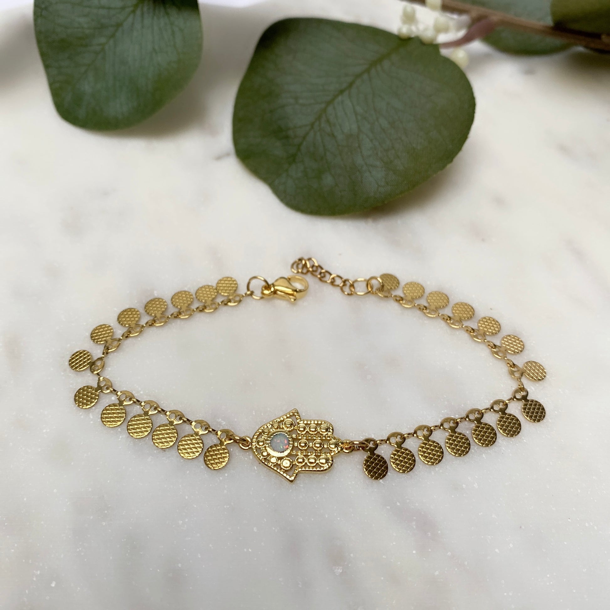 Chaîne fantaisie #5 en acier inoxydable plaqué or avec hamsa et fermoir mousqueton
