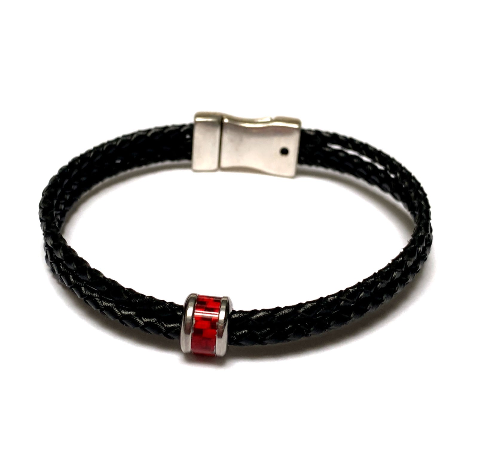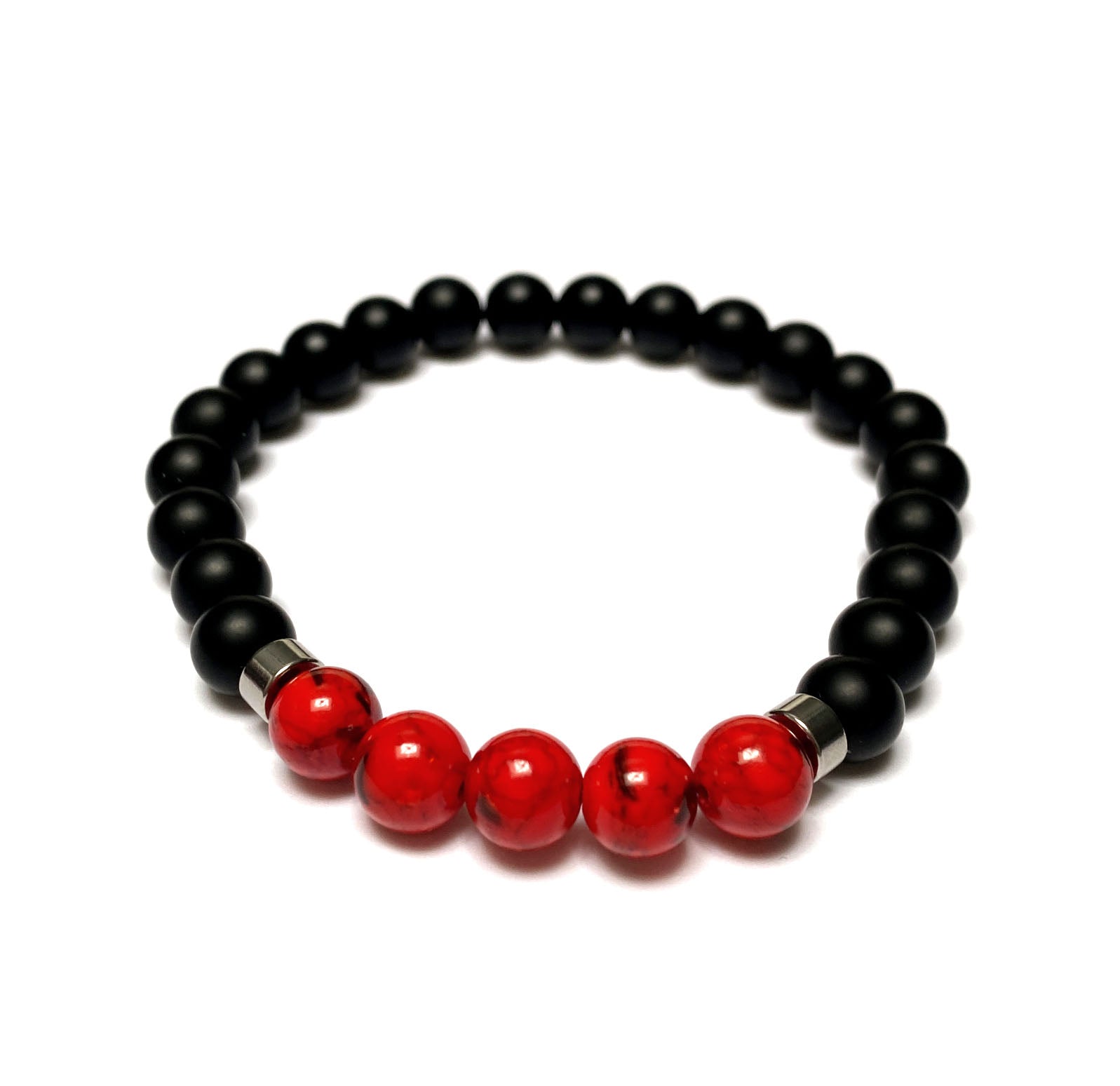 #2 Onyx mat 6 mm avec pierres précieuses rouges et accents de rondelles en acier inoxydable (extensible)
