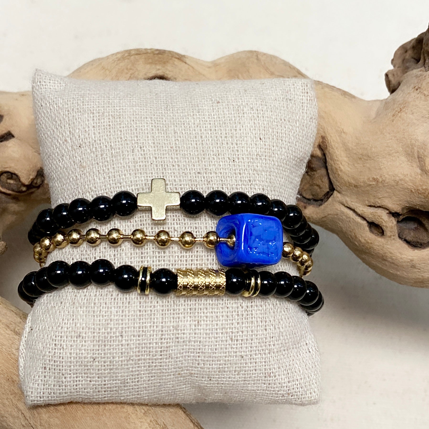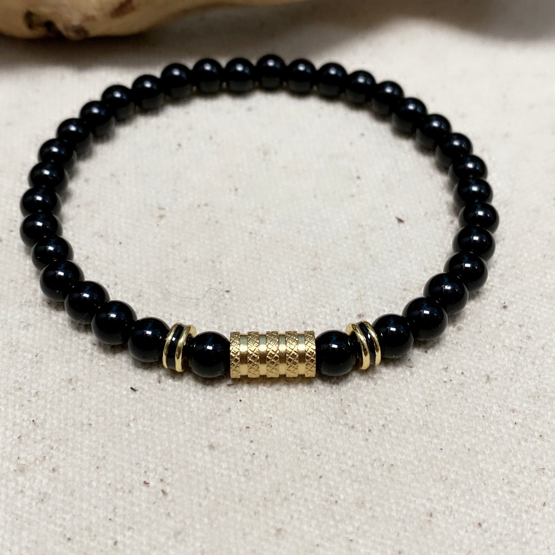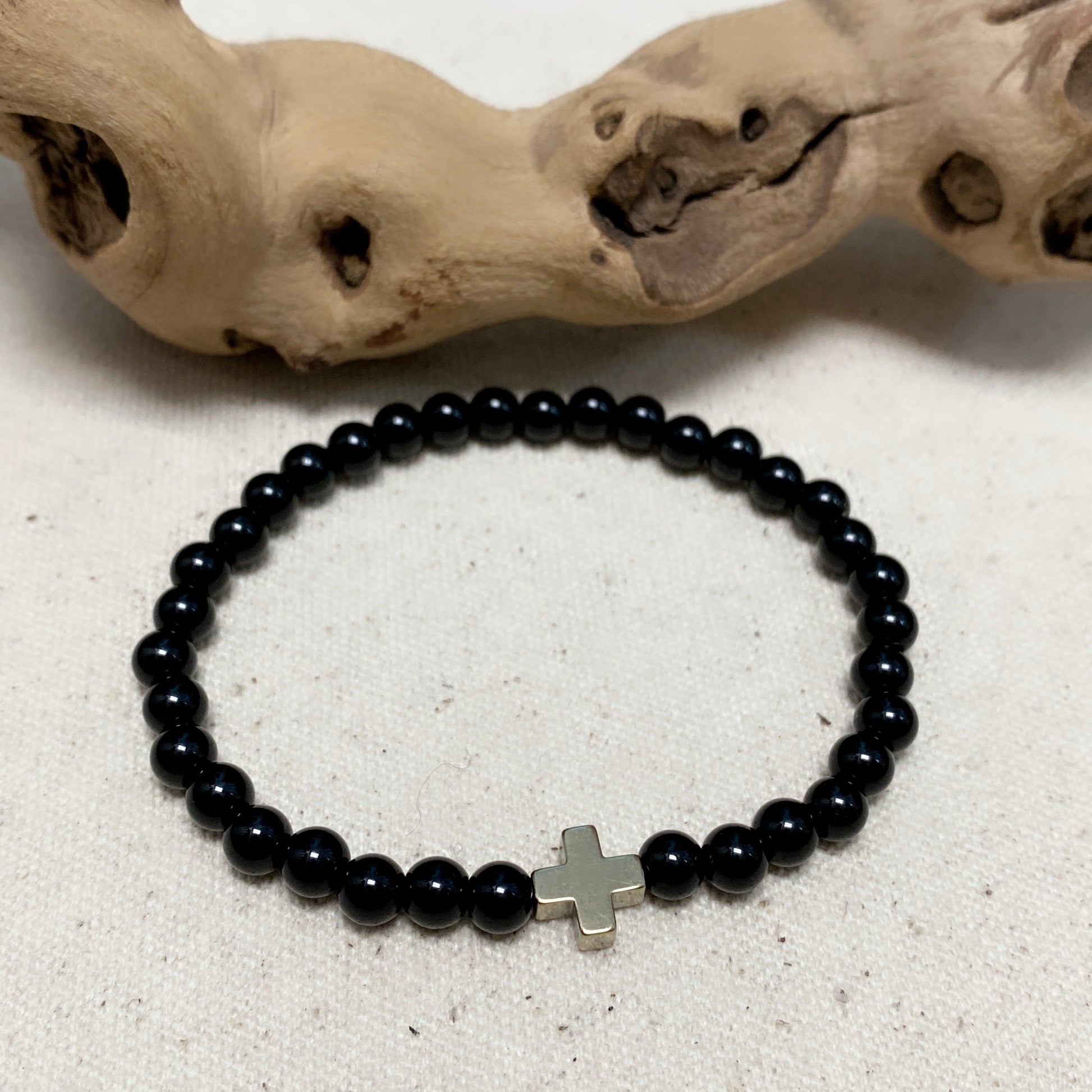 #1 Onyx brillant avec croix plaquée or (extensible)