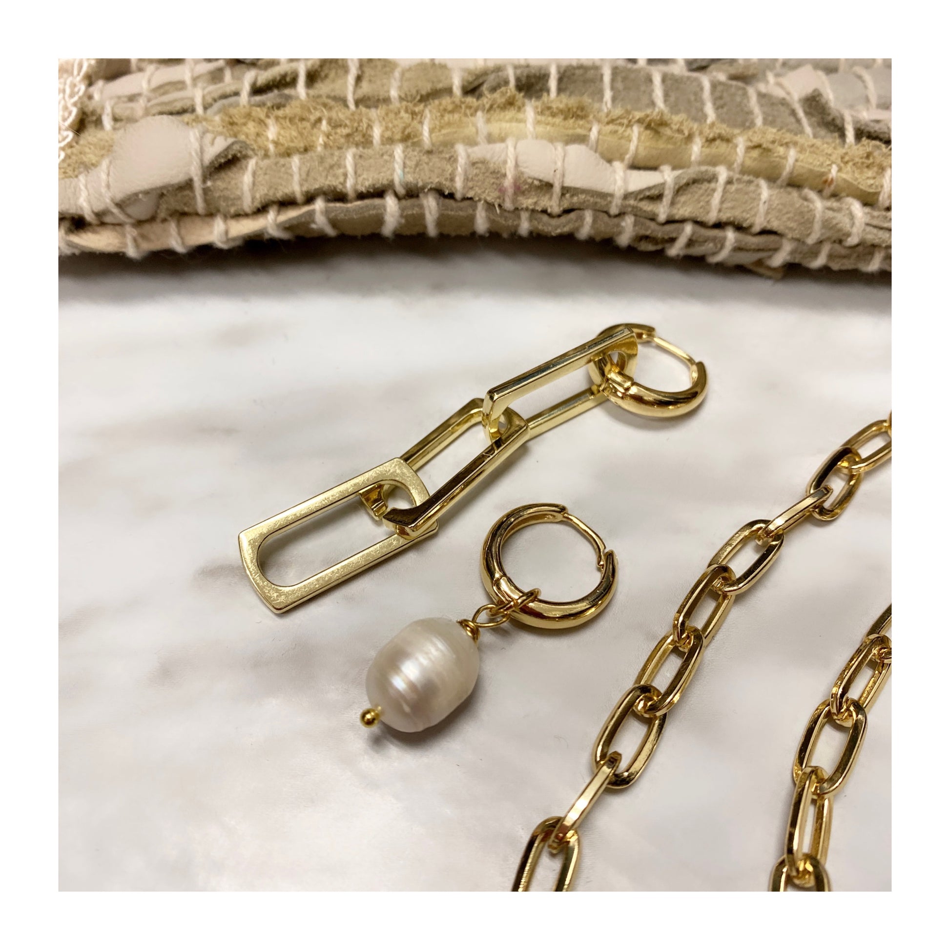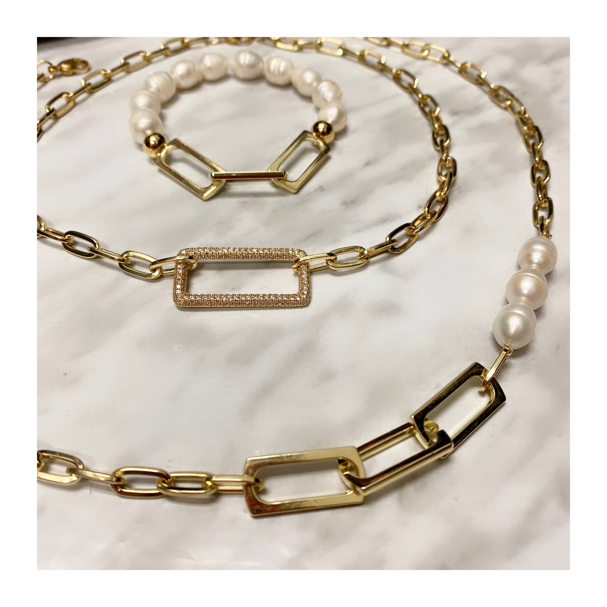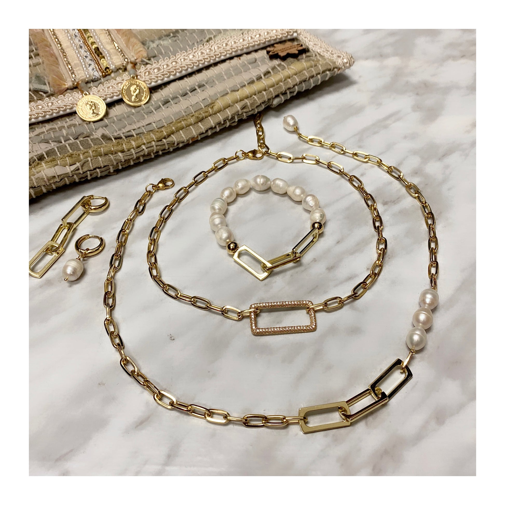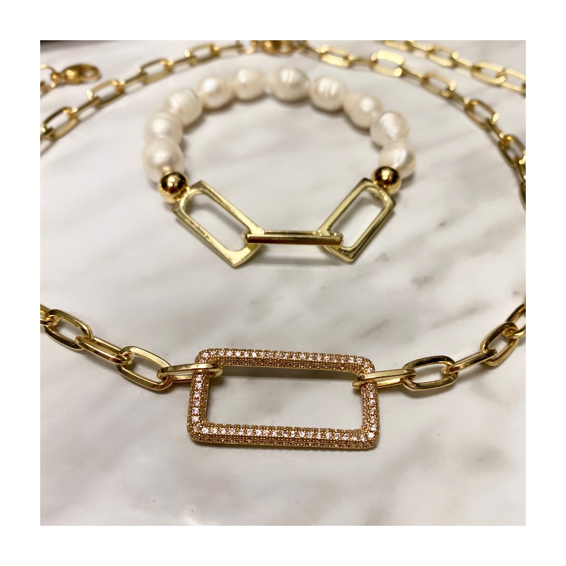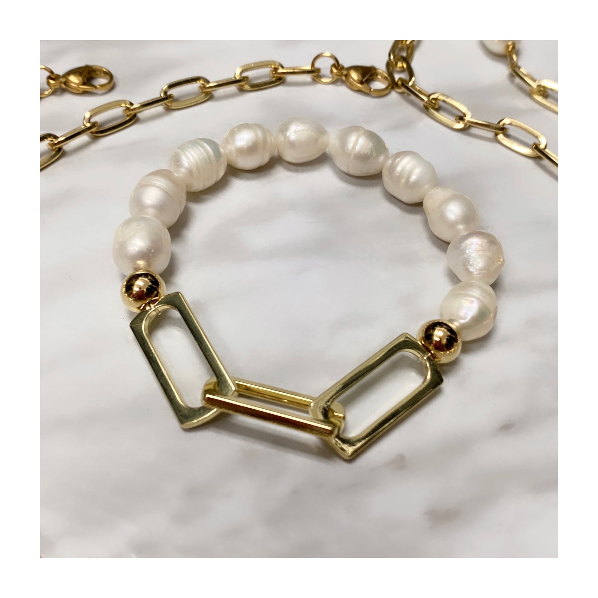 #3 (bracelet) Maillons rectangulaires en laiton et perles d'eau douce (stretch)