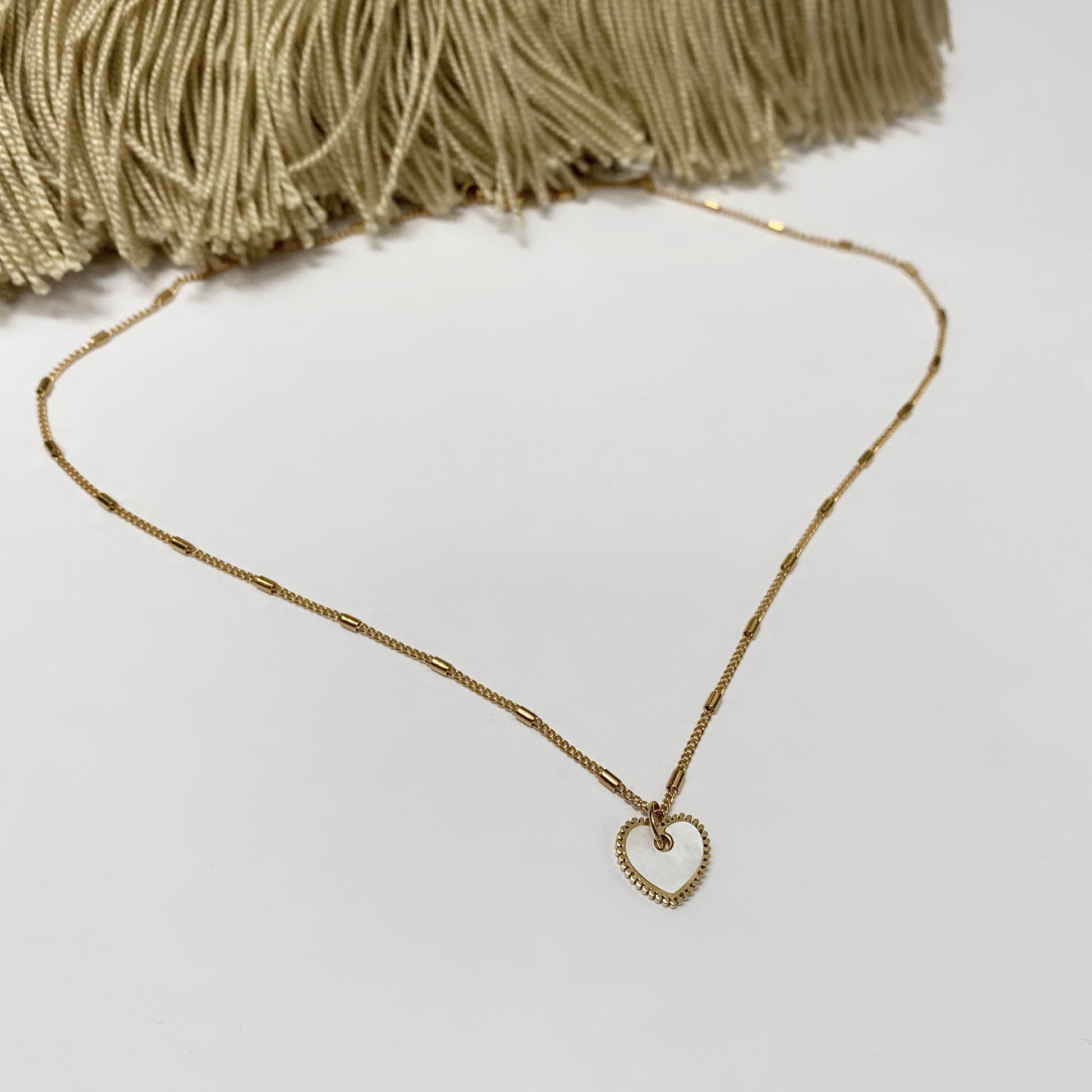 Chaîne en acier inoxydable #2 avec pendentif coeur en coquillage délicat mesurant 17 pouces,