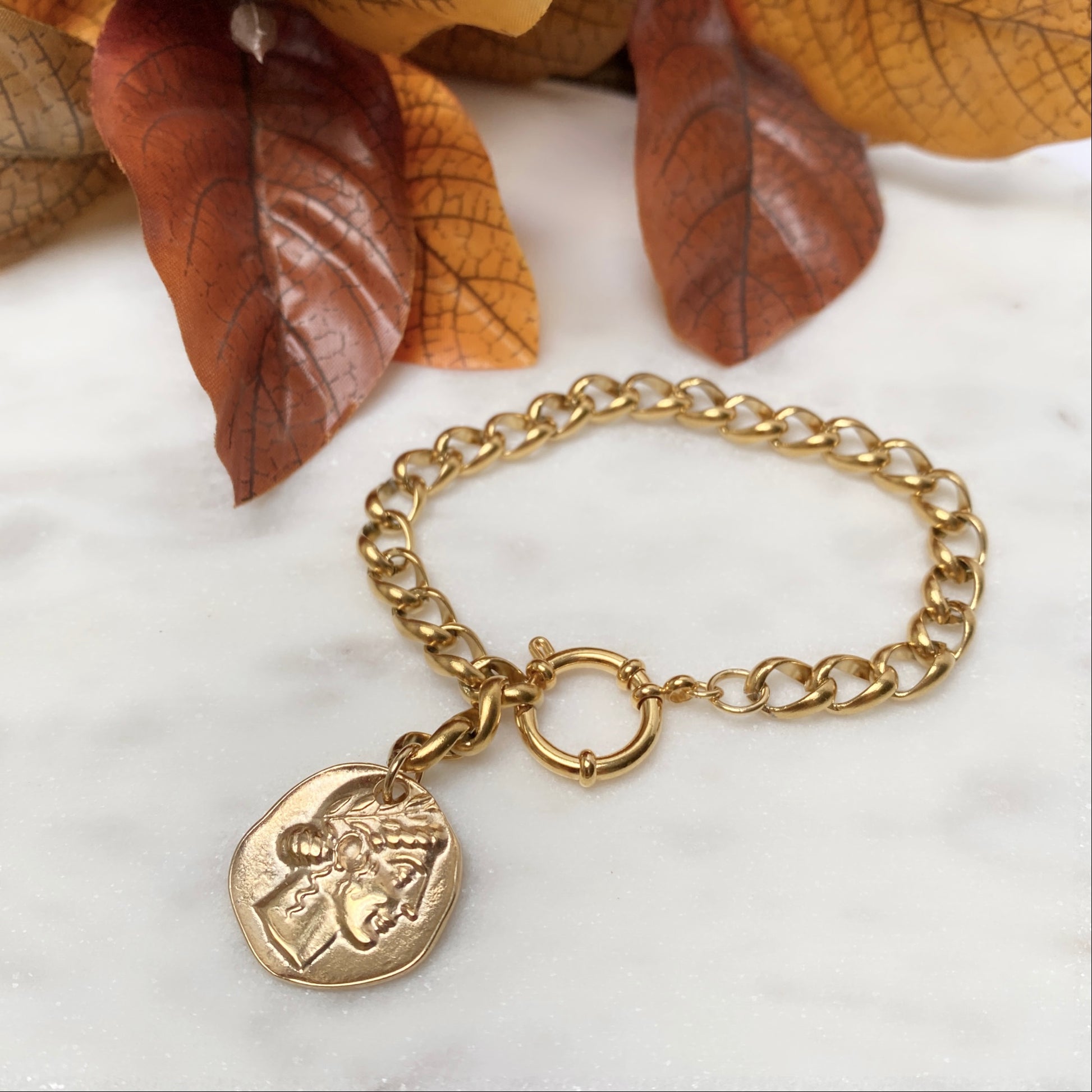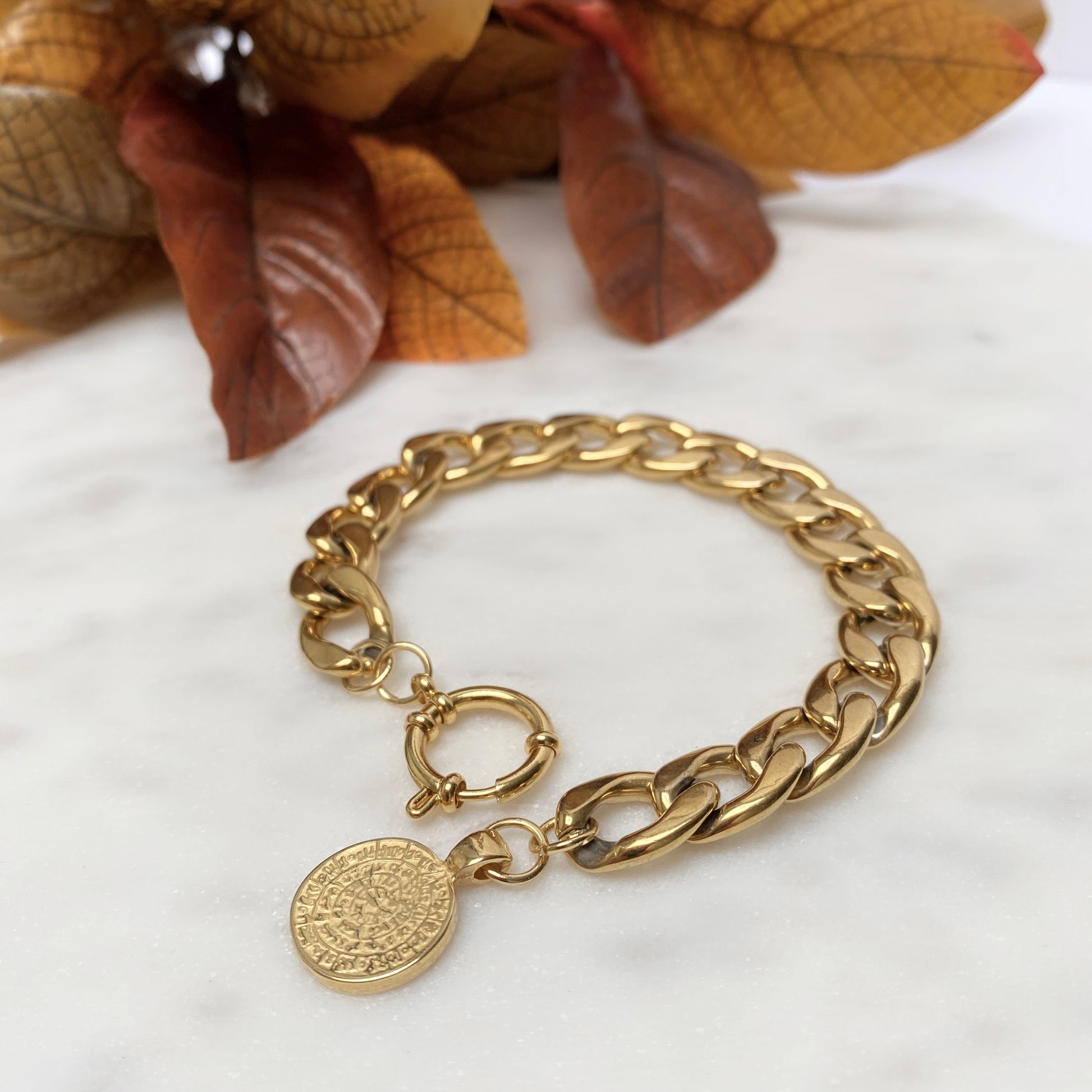 Chaînes et breloques pièces de monnaie en acier inoxydable plaqué or