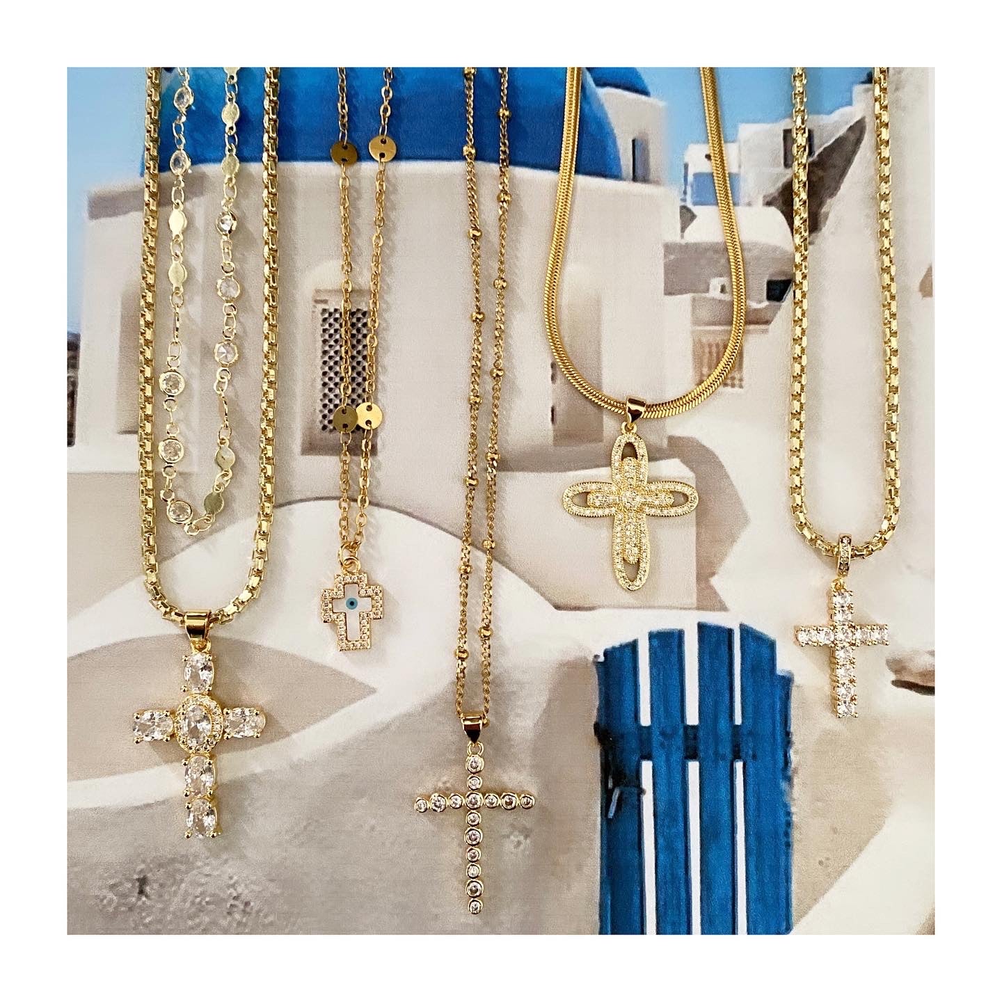 Chaînes plaquées or en métal laiton & acier inoxydable avec diverses croix