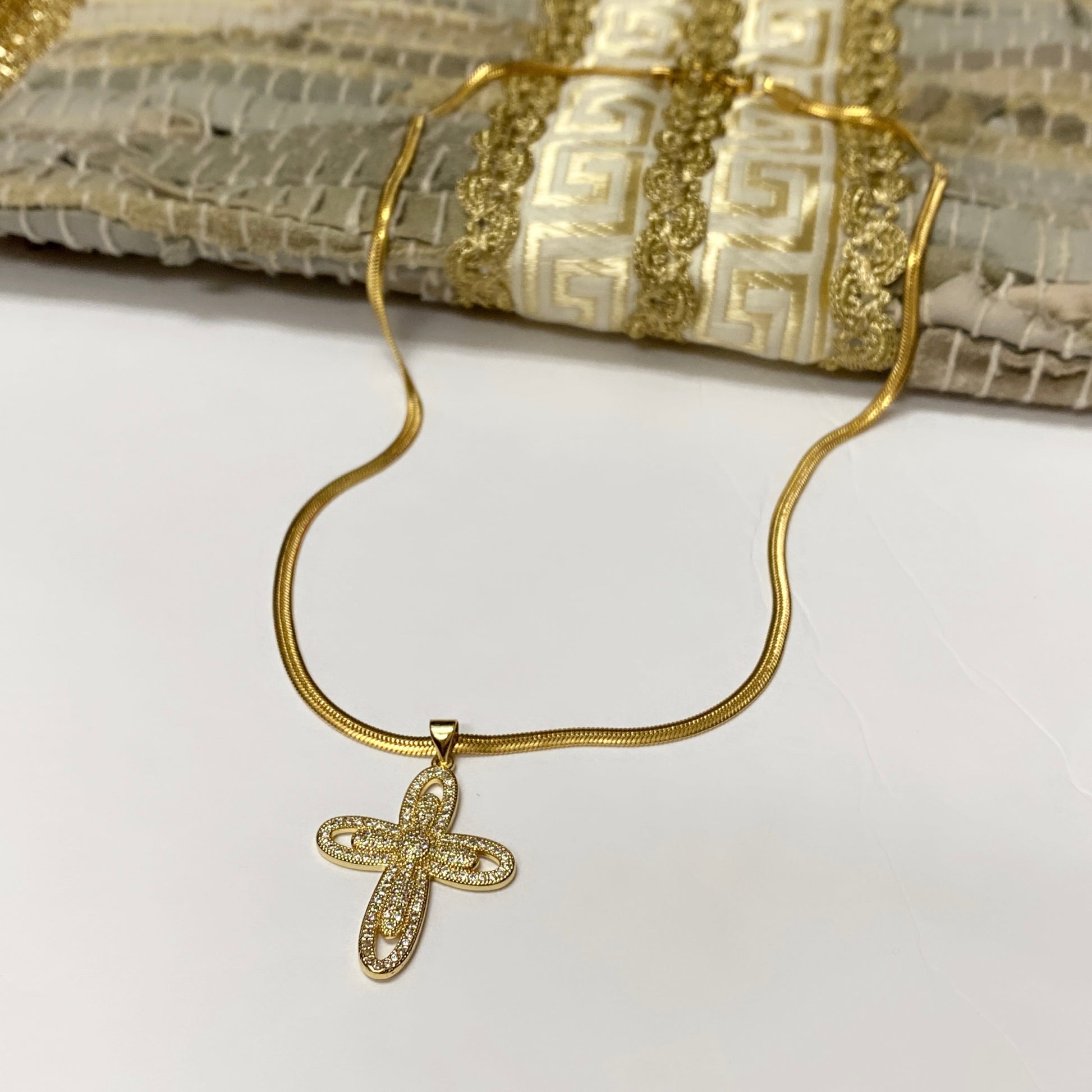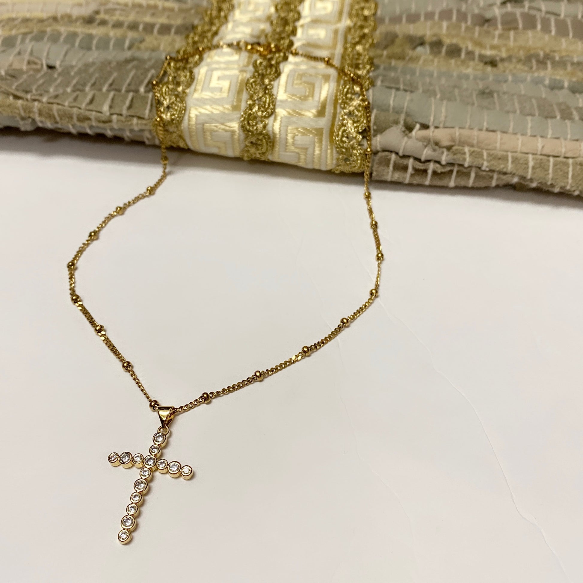 #5 Chaîne en laiton plaqué or et croix en zircone cubique avec fermoir mousqueton mesurant 43,2 cm.